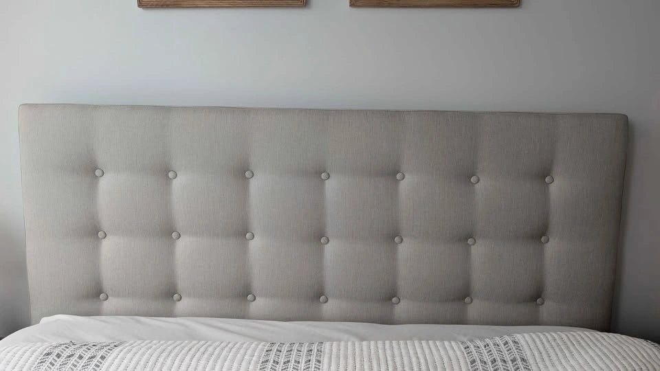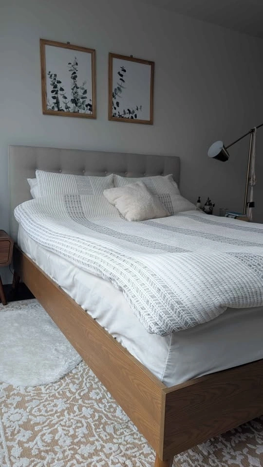 Solid Wood Queen Bedframe Upholstered Headboard + FREE queen mat