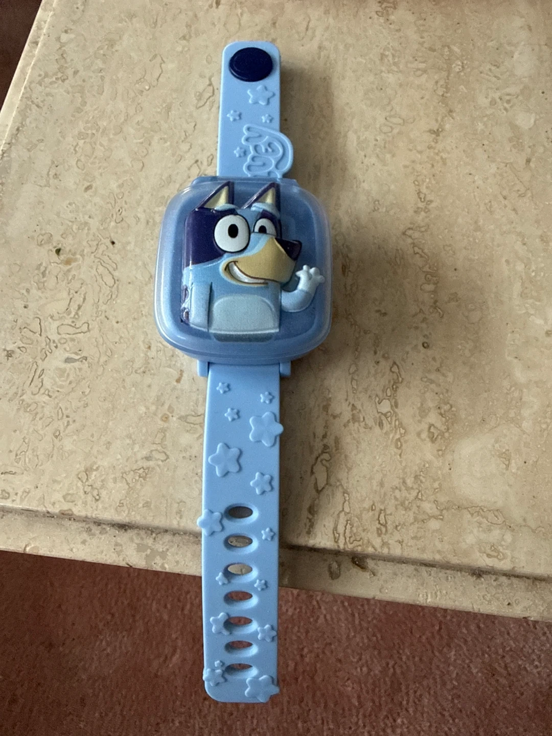 Here's a cute VTech Bluey-themed watch for kids! It's in a lovely light blue colour and features Bluey on the watch face. Perfect for any Bluey fan!
