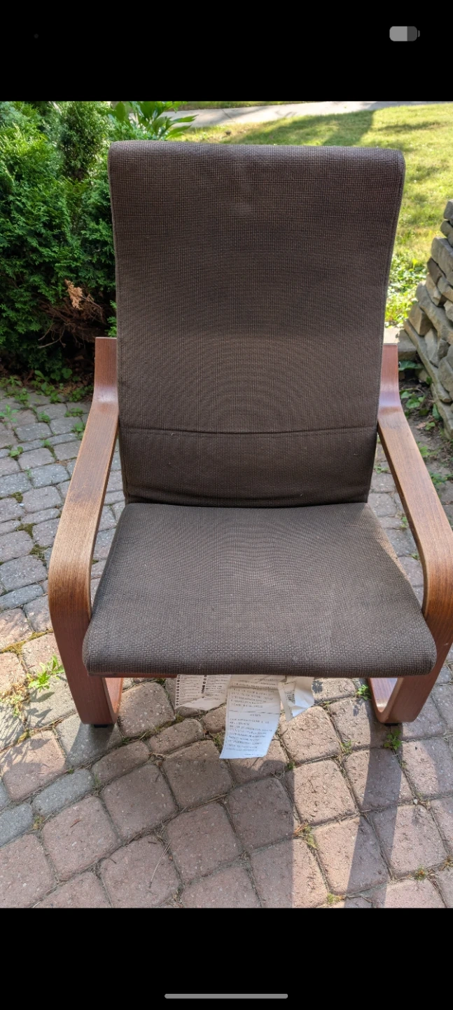 Selling a comfy brown armchair with a bentwood frame. It's in great shape and would look perfect in a living room or study! The chair has a unique design, and is very sturdy
