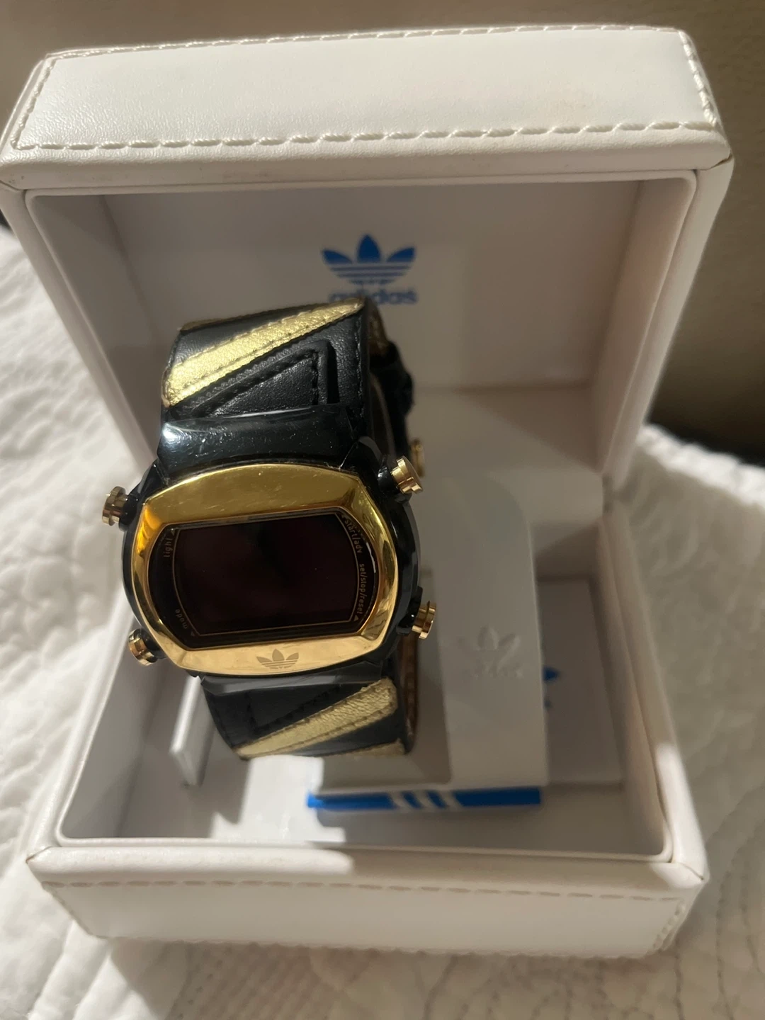 Selling an Adidas Archive R2 watch in black and gold! It comes with the original box.