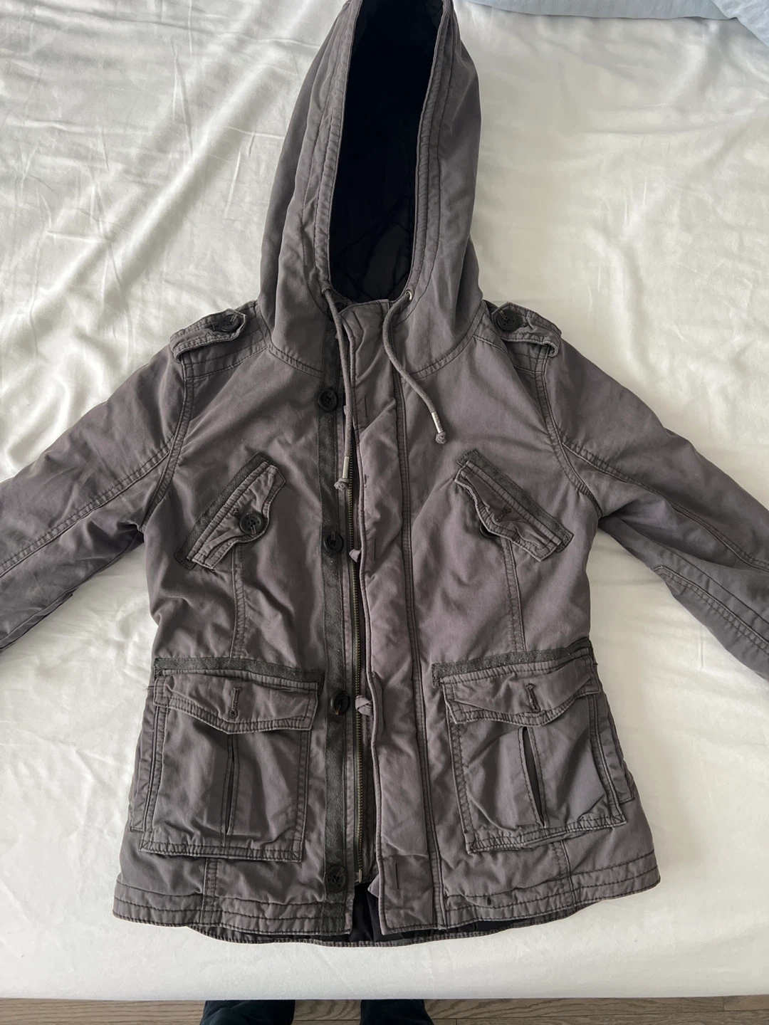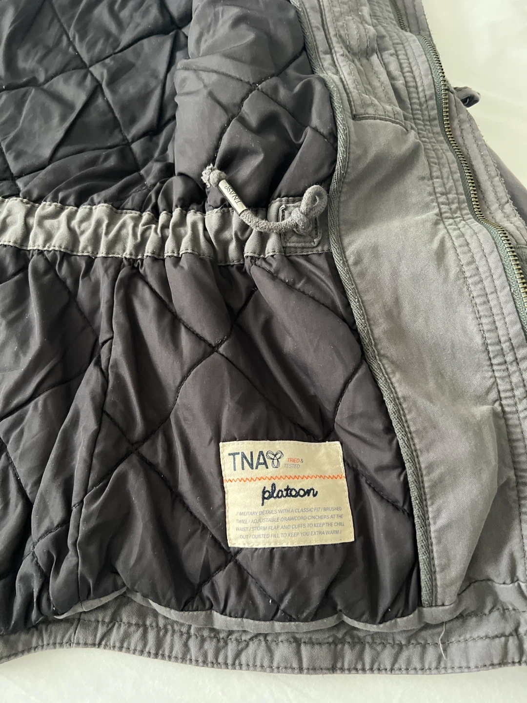 TNA Platoon jacket in size XS! It's a stylish and comfortable jacket perfect for cooler weather. The jacket is in good condition and ready for a new owner!