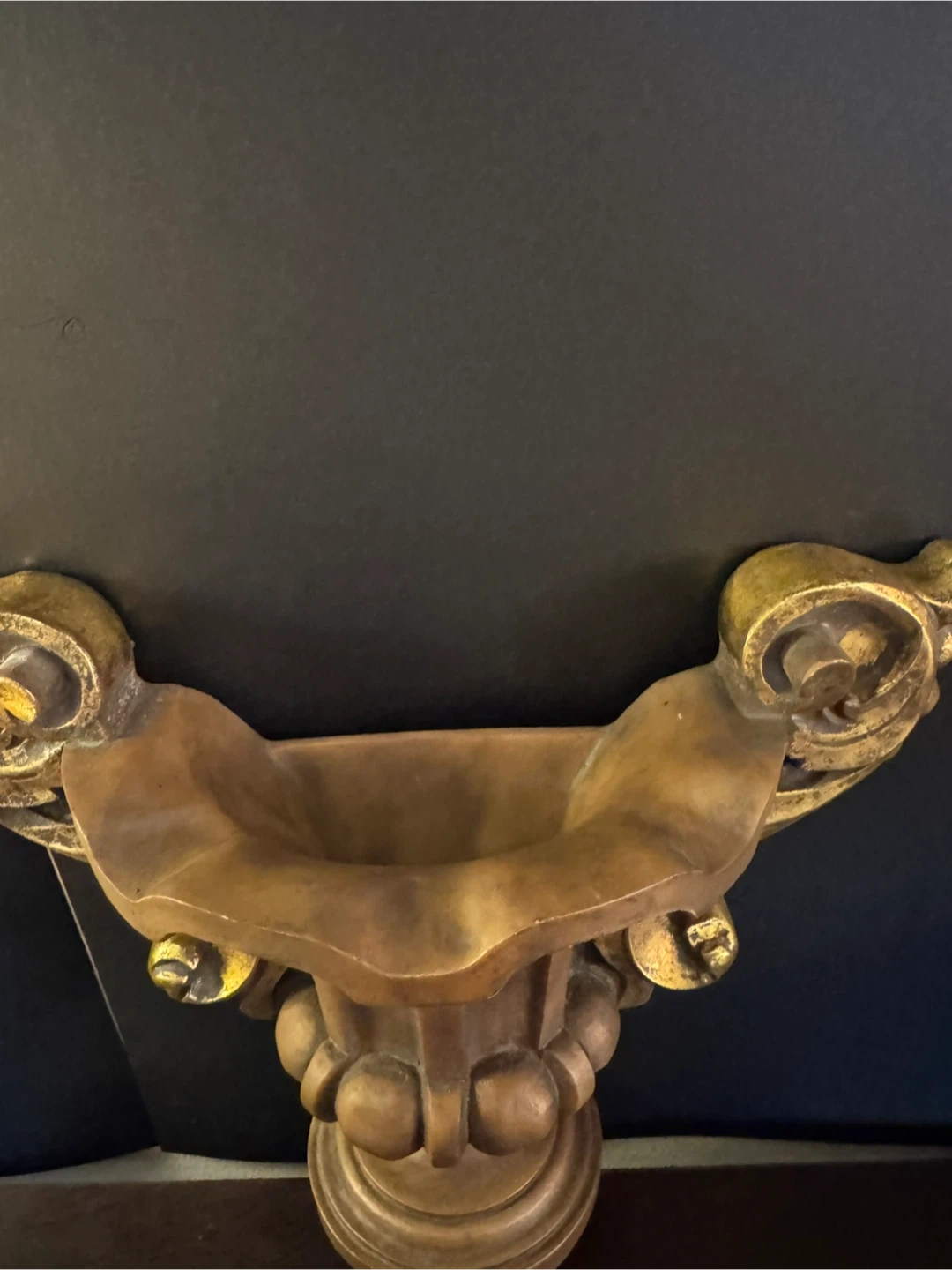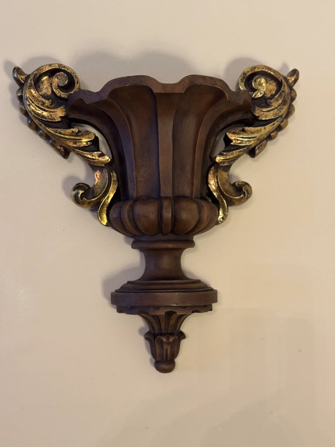 Here's a lovely vintage style wall sconce! It's in great condition and would add a touch of elegance to any room. The sconce features a beautiful brown and gold finish.High 15 inches,wide 13 inches