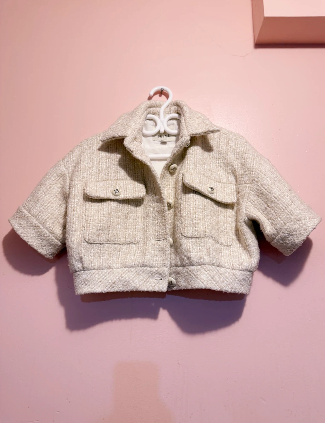 It has a stylish look with short sleeves and front pockets. Perfect for layering or wearing on its own during warmer days. Great condition and ready for a new