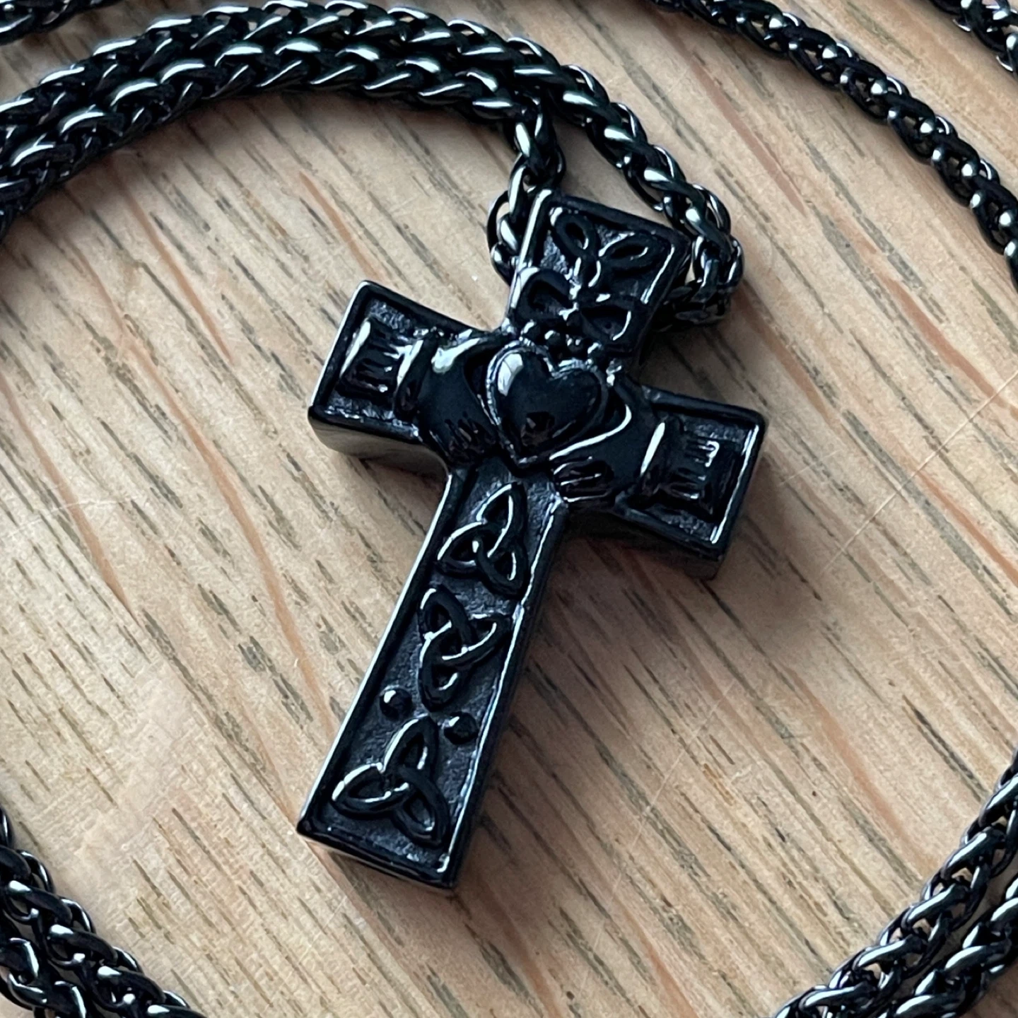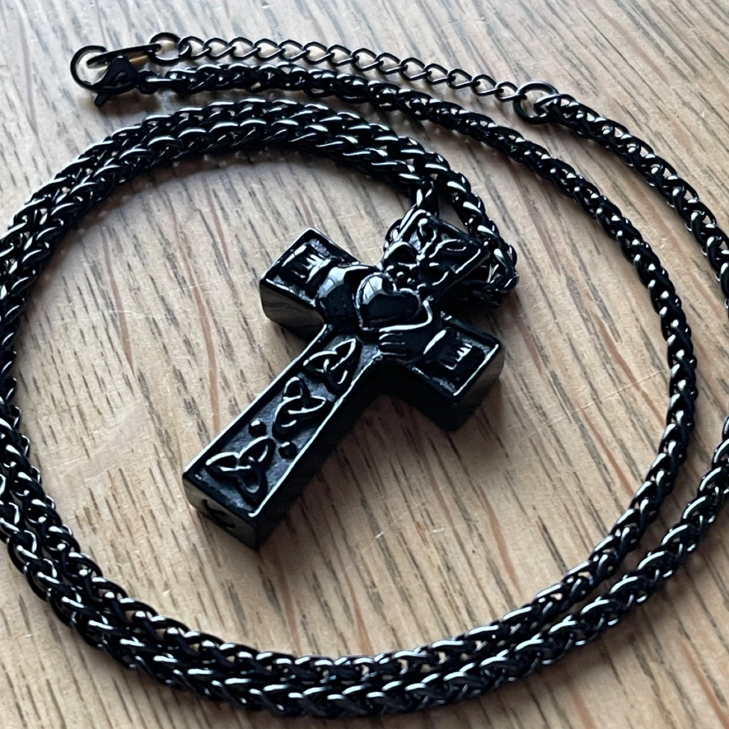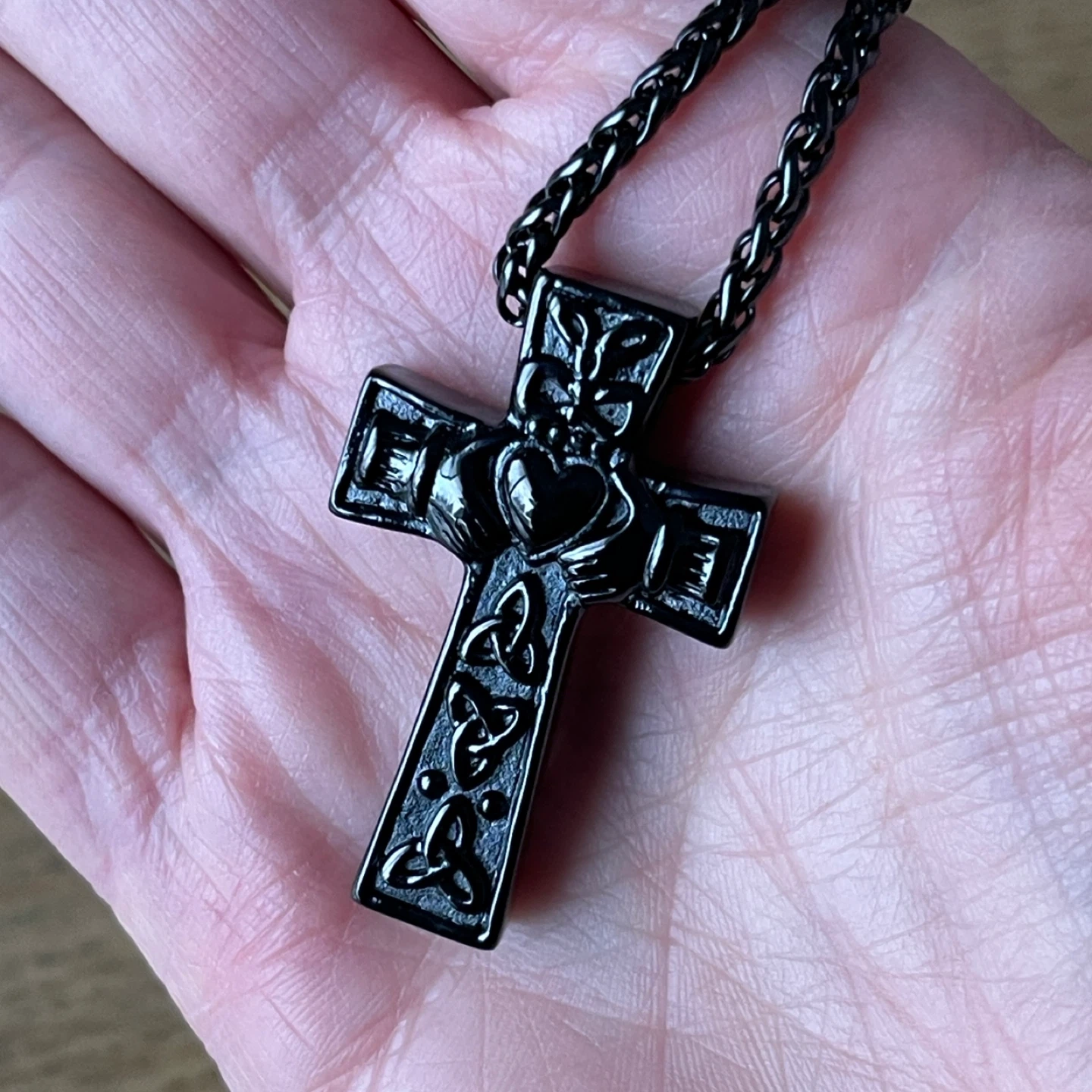 Celtic Knot Claddagh Cross “Urn” stainless steel necklace