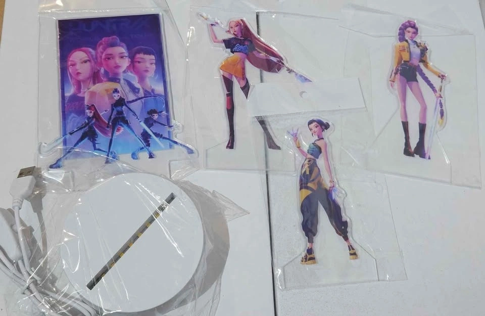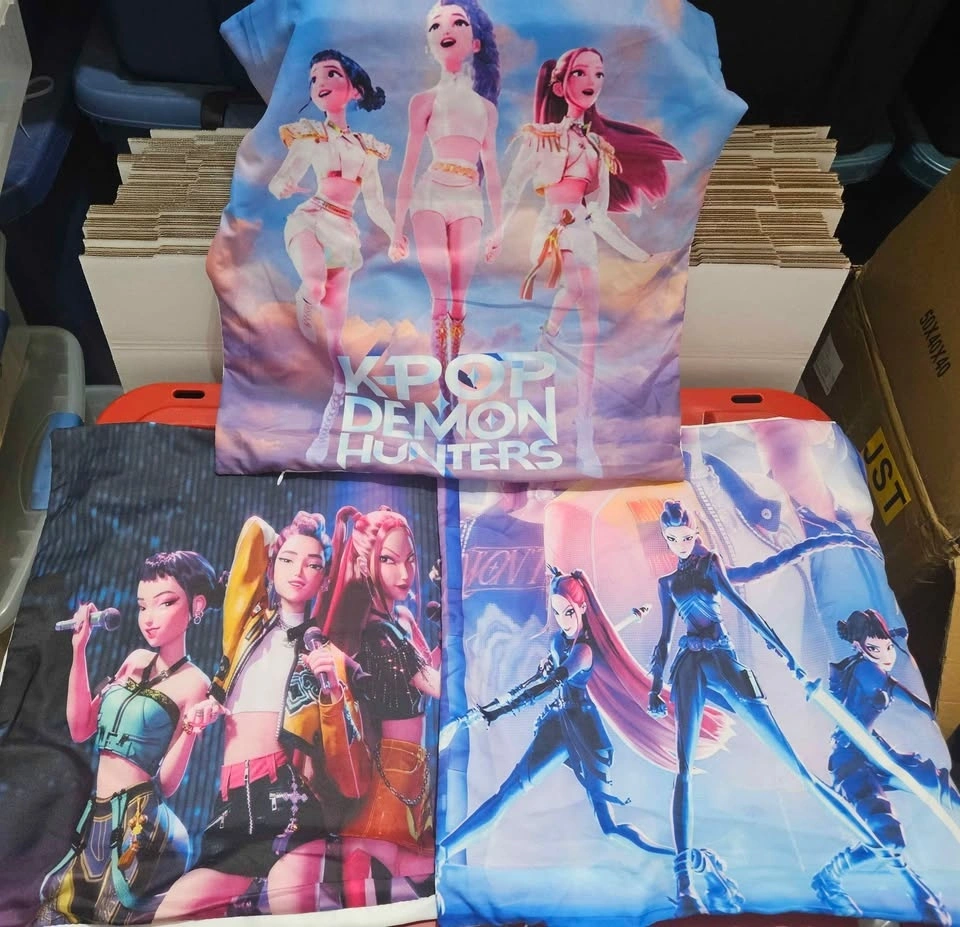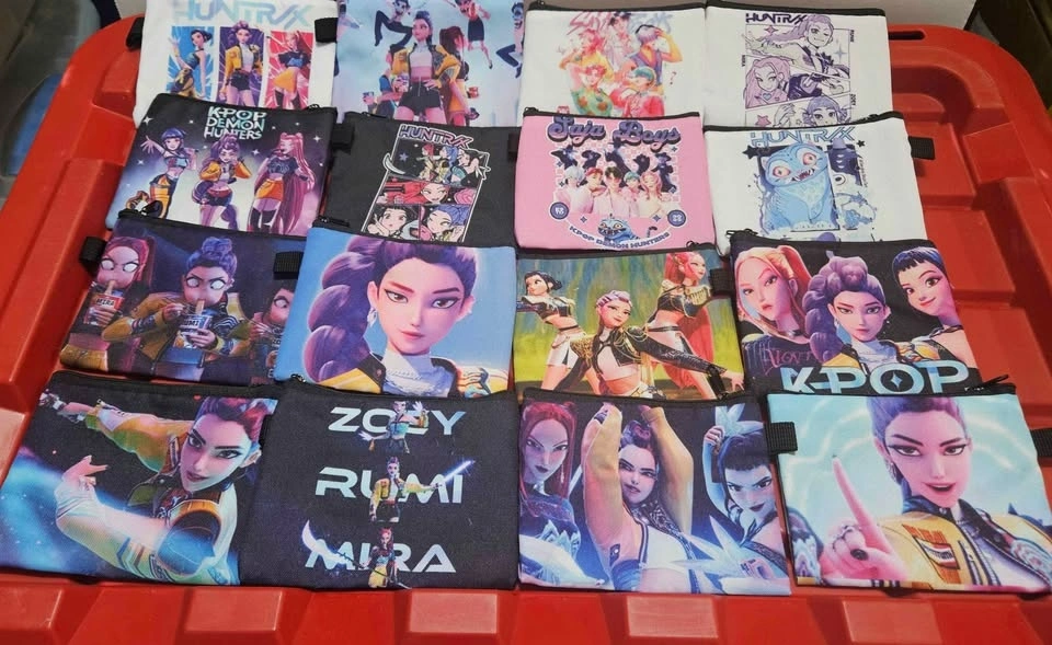 Build your own Kpop Demon Hunters mystery box. Or as it comes complete mystery built. 7 items in total. One light, pillow case, beanie, bag clip, keychain, enamel pin and coin purse. $50 for one mystery box. Items sold separately as well. Prices separate below.