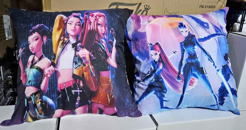 $30 each, 3 designs available. Just the pillow case available for $20. Or you can get our exclusive kpop demon hunters mystery boxes. Includes a pillow case, bag clip keychain, regular keychain, enamel pin, coin purse, beanie and acrylic light of a character of your choice. Mystery box is $50. Porch pickup by 9th line and steeles in Markham cash only.