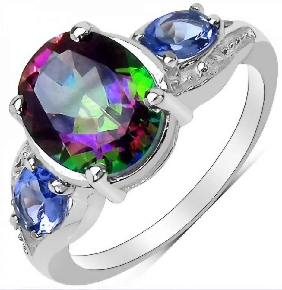 Gorgeous Womens 14K White Gold Over Solid Sterling Silver Diamonds 0.7 CTW Tanzanite and 3.25 CTW Mystic Topaz Size 7 Designer Ring RETAIL VALUE 2K. Accepting best offers. Feel free to message ☺️