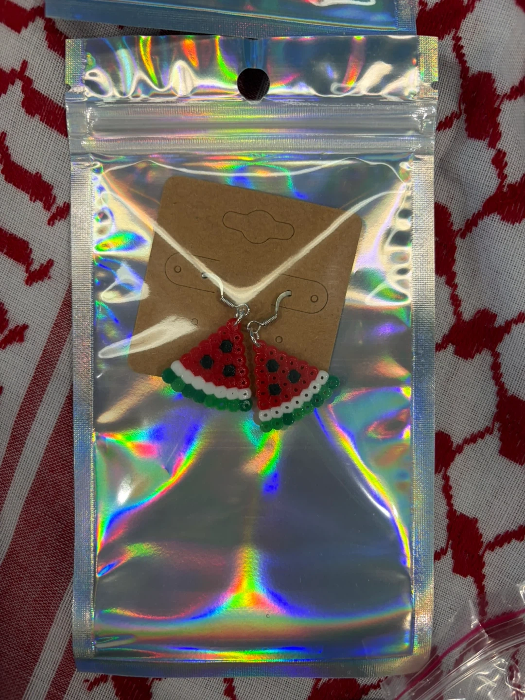 I'm selling a handmade mug with a cute watermelon design! Also included are some matching watermelon-themed accessories, like a keychain and earrings. These are perfect for adding a touch of summer to your collection.