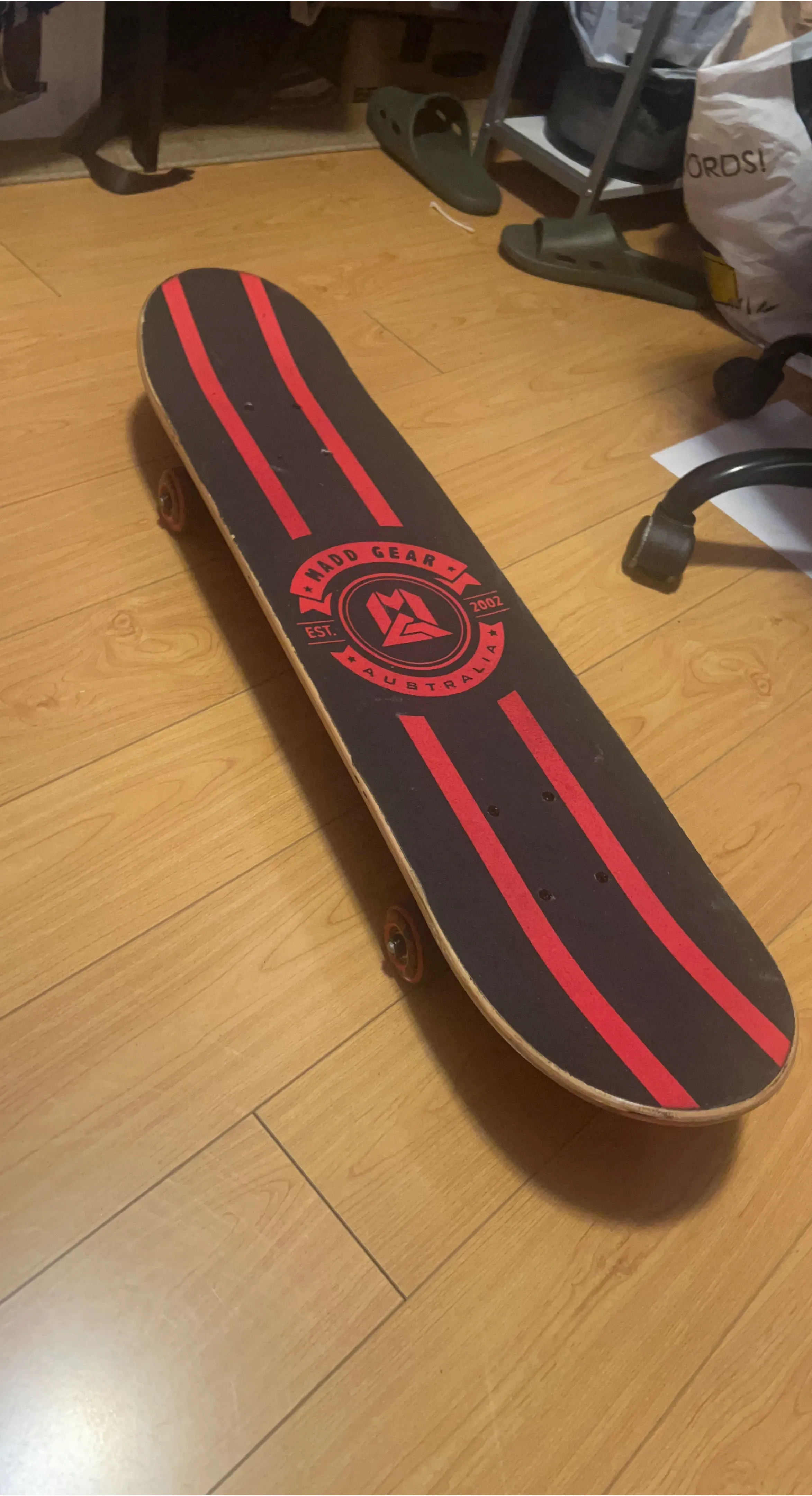 Buy & SellMadd Gear SkateboardMadd Gear Skateboard$36Selling a Madd Gear skateboard. It has a black deck with red stripes and a red logo. Great for getting around town!ConditionGoodWHERE TO MEET271 Giddings CrescentView MapSELLERPaoGiddings Crescent100 reviews0 chats·0 favorites·8 viewsSEND CHAT TO SELLERHi Pao! I’m interested in your listing.Hi Pao! I’m interested in your listing.Get the Karrot app to chatSign In to chat
