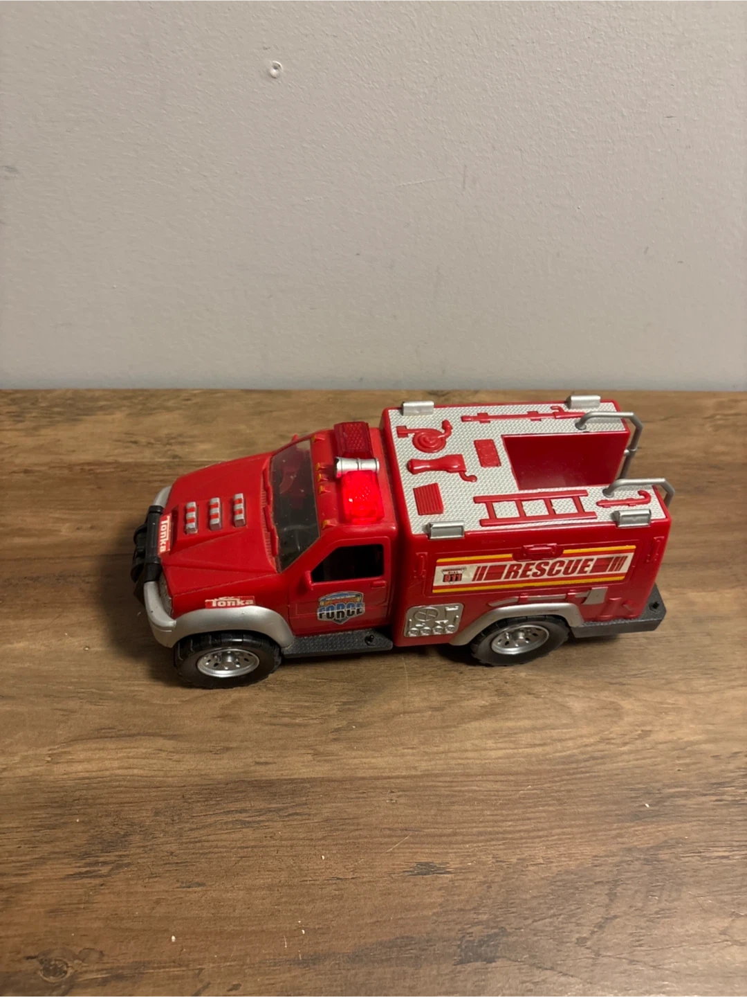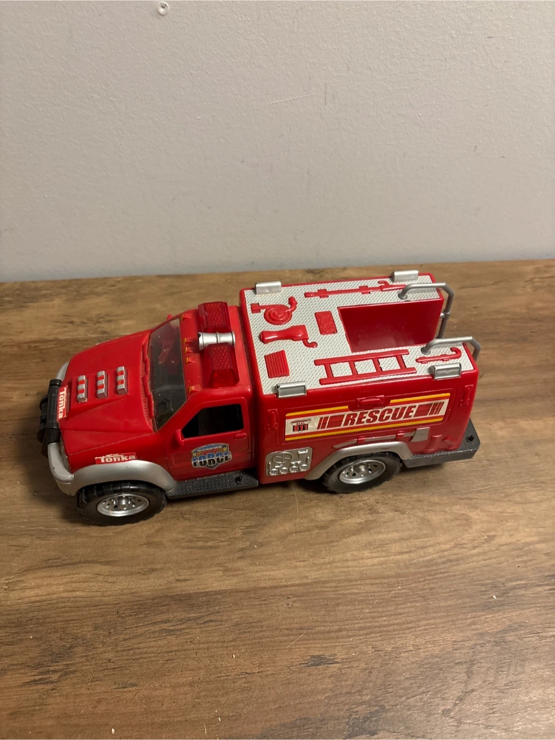 Selling a red Tonka Rescue Fire Truck. Great for kids who love playing with toy vehicles. It is in good condition and ready for a new home!