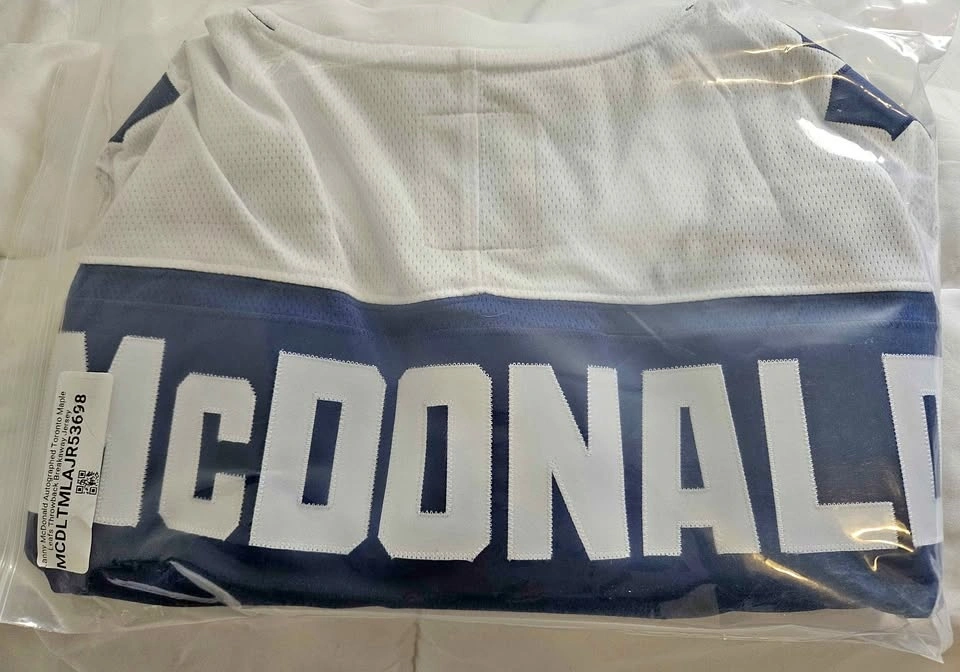Official signed Lanny McDonald Jersey vintage fantastics. $400 PRICE DROP $300 or Best Offer. Also willing to trade for signed jersey of current Leafs players. Porch pickup by 9th line and steeles.