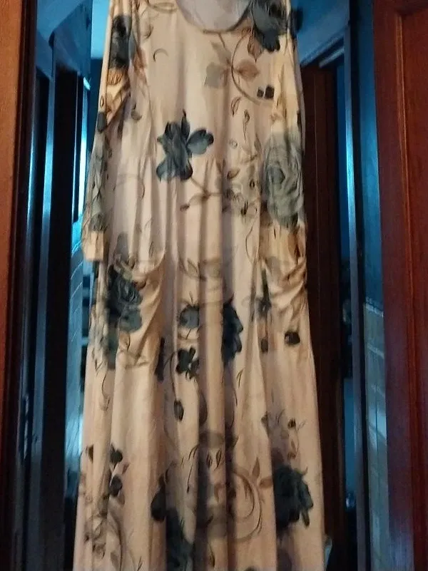 Here's a lovely floral print dress in size 2XL. It's got a comfortable, relaxed fit and a beautiful floral design. Perfect for a casual day out or a cozy evening at home!