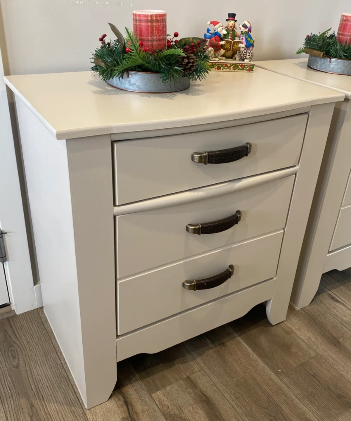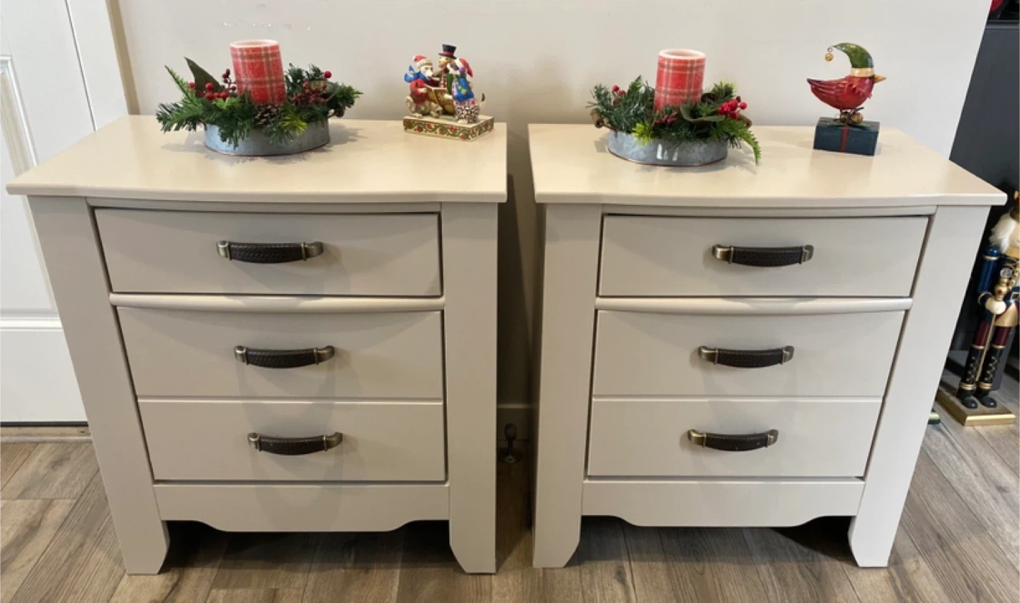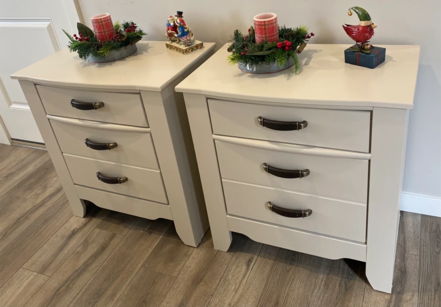 Beautiful pair of king nightstands painted in a warm off-white called Cashmere with Satin clear coatings