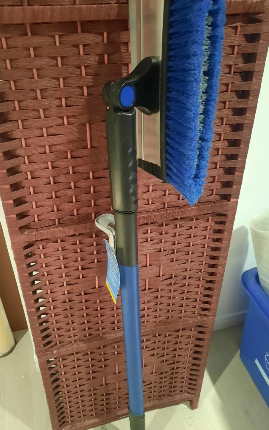 Keep your car clear this winter with this 3 in 1 Telescopic PolarXtreme Snow Brush and Ice Scraper! Blue handle with brush on one end and an ice scraper on the other. It's about 44 inches long when collapsed and extends to about 60 inches for reaching those tricky spots on your Car/Truck/SUV.