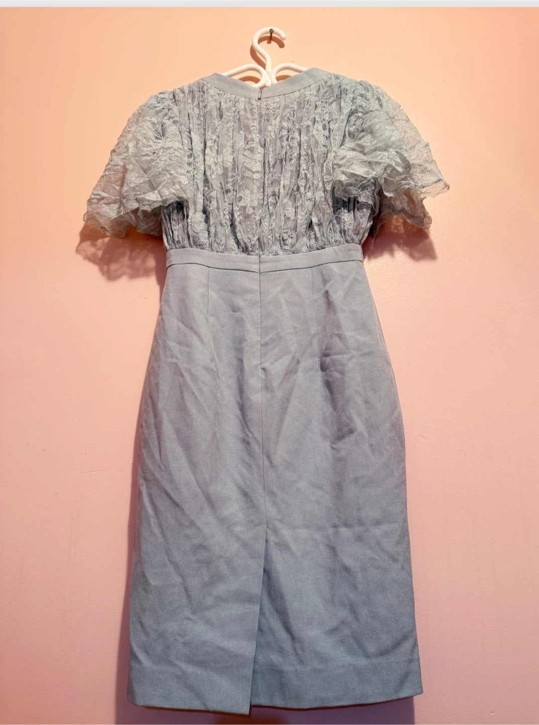 Selling a lovely blue dress with lace detailing! It's in great condition and would be perfect for a special occasion or just to add a touch of elegance to your wardrobe