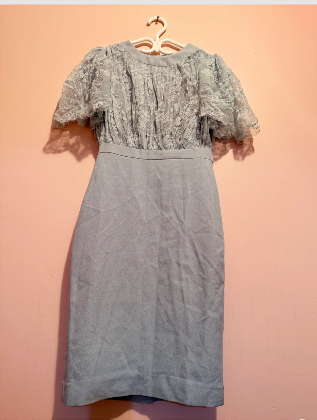 Selling a lovely blue dress with lace detailing! It's in great condition and would be perfect for a special occasion or just to add a touch of elegance to your wardrobe