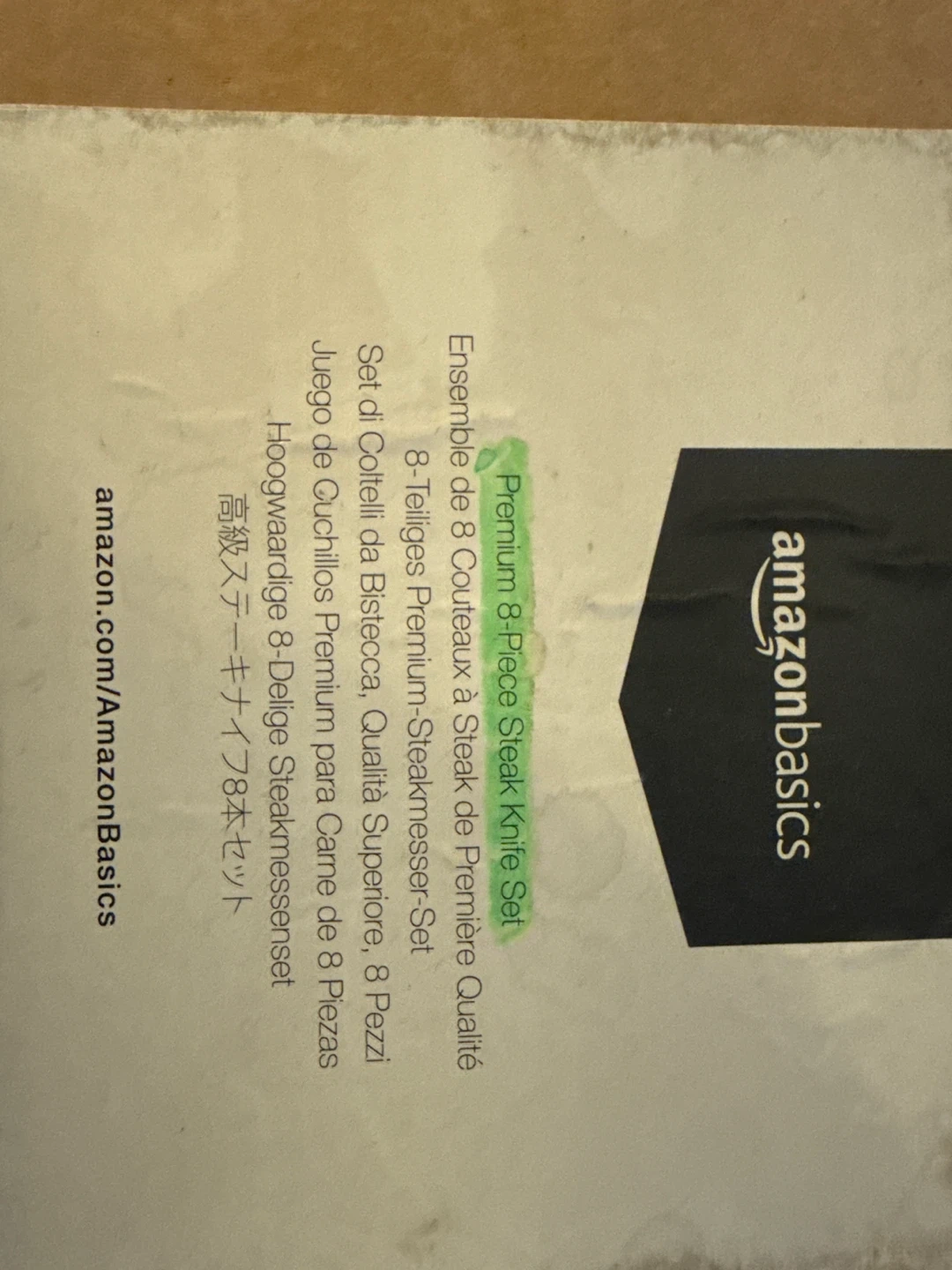 Selling a brand new AmazonBasics 8-piece steak knife set! These knives are still in their original packaging and box. They are hand wash only. Perfect for any kitchen!