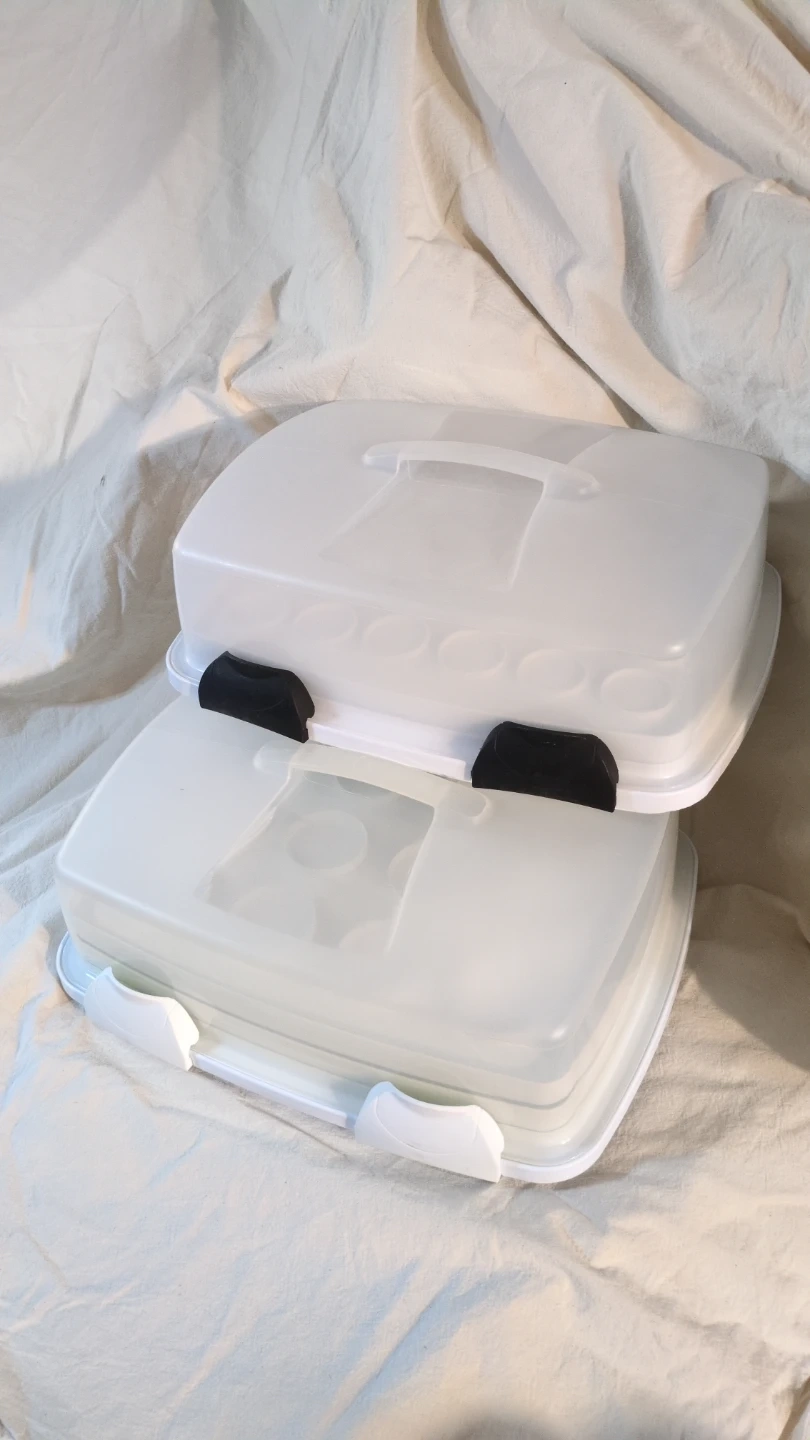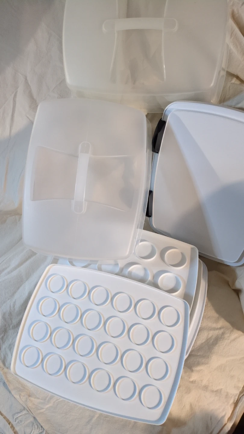 3 in 1 Wilton cake and cupcake carrier with a lid! It's perfect for transporting your baked goods to parties or gatherings. It is white and in great condition!