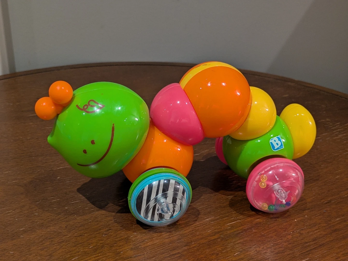 I'm selling a Bright Starts Press & Glow Spinner toy! It's in great condition and ready for a new home. The toy features bright, colourful segments and a cute caterpillar design. Perfect for little ones to explore and develop their motor skills!