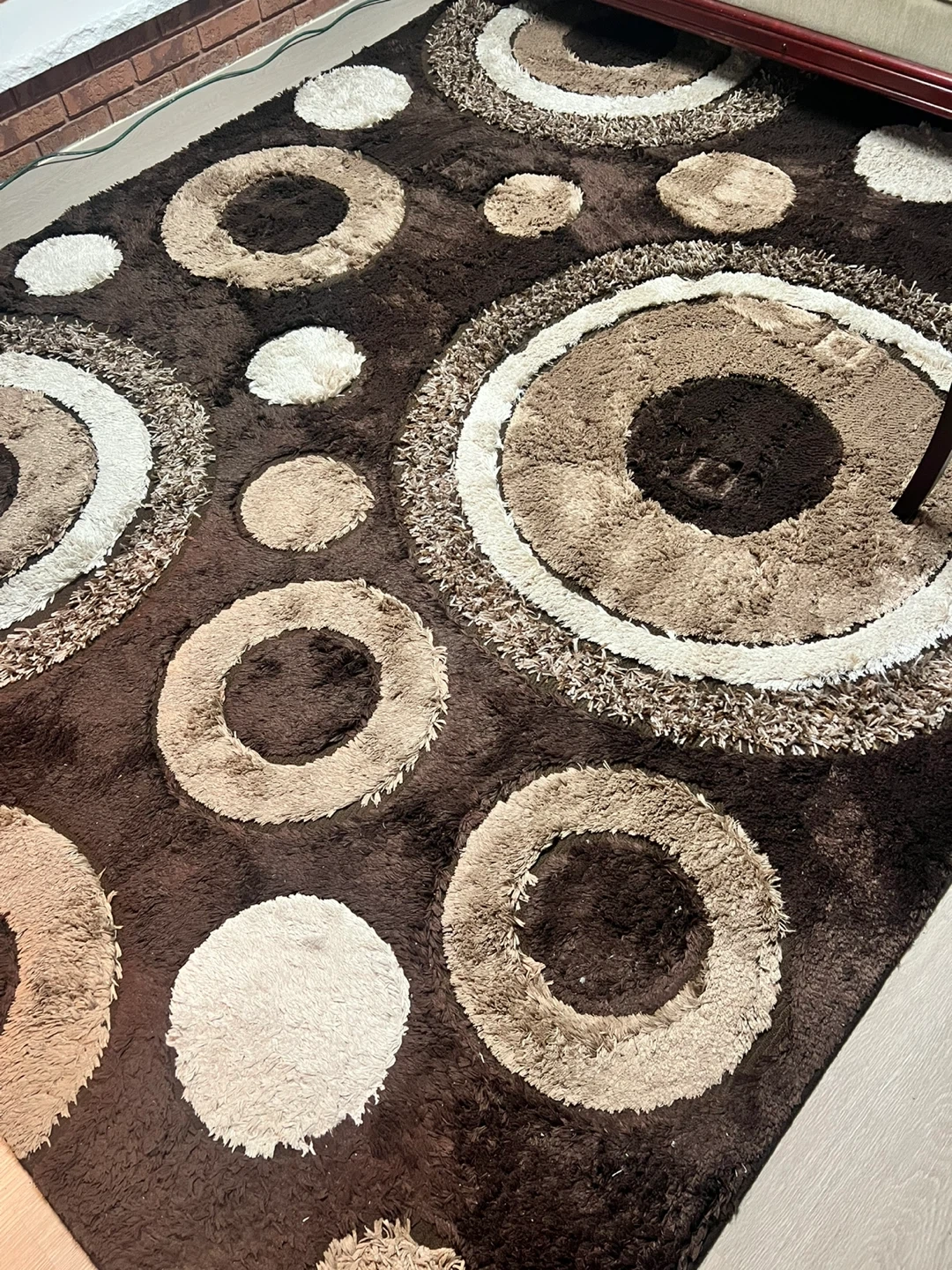 Selling a Butterfly rug in brown from Sunshine Rug Inc. It's a lovely rug with a unique design that would look great in any room. The size is 14. It's in good condition and ready for a new home!