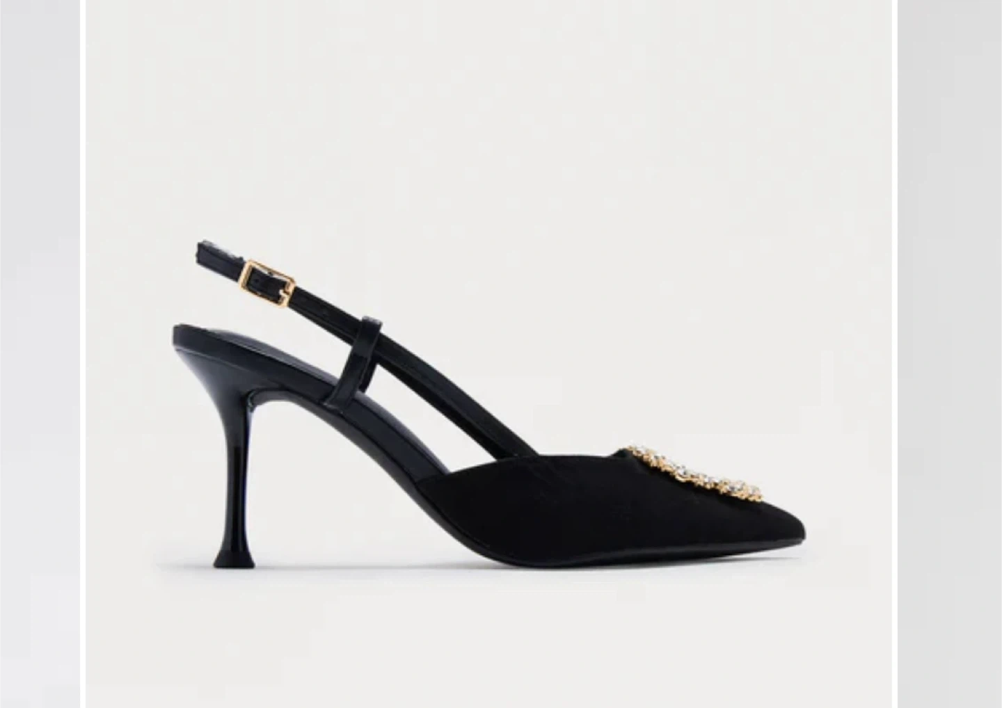 I'm selling a pair of women's heels. One pair is blue and white checkered with a bow. The other pair is black with a strap and a gold embellishment