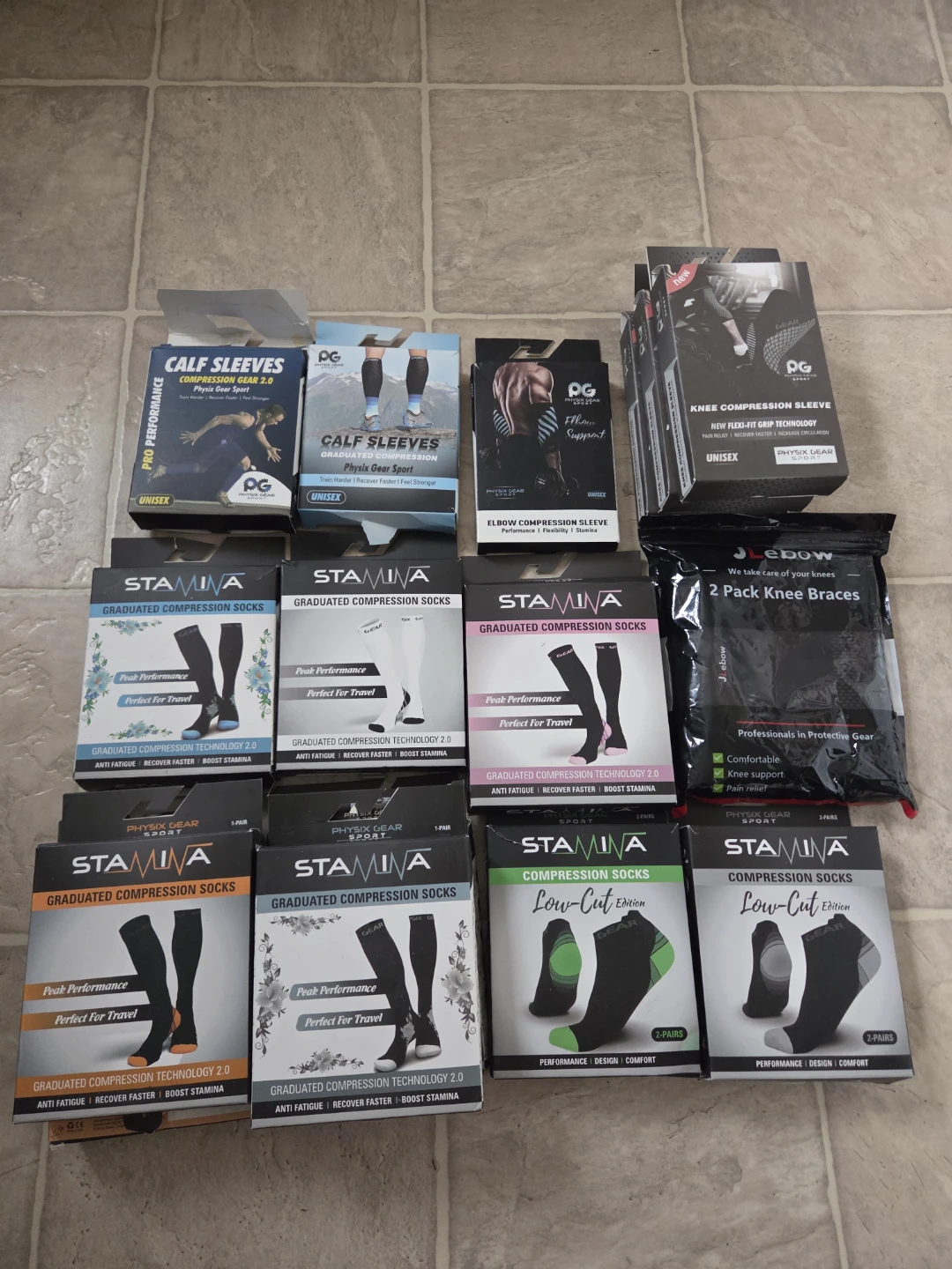 New Compression for knee, Elbow, Calf, Long and Short Socks