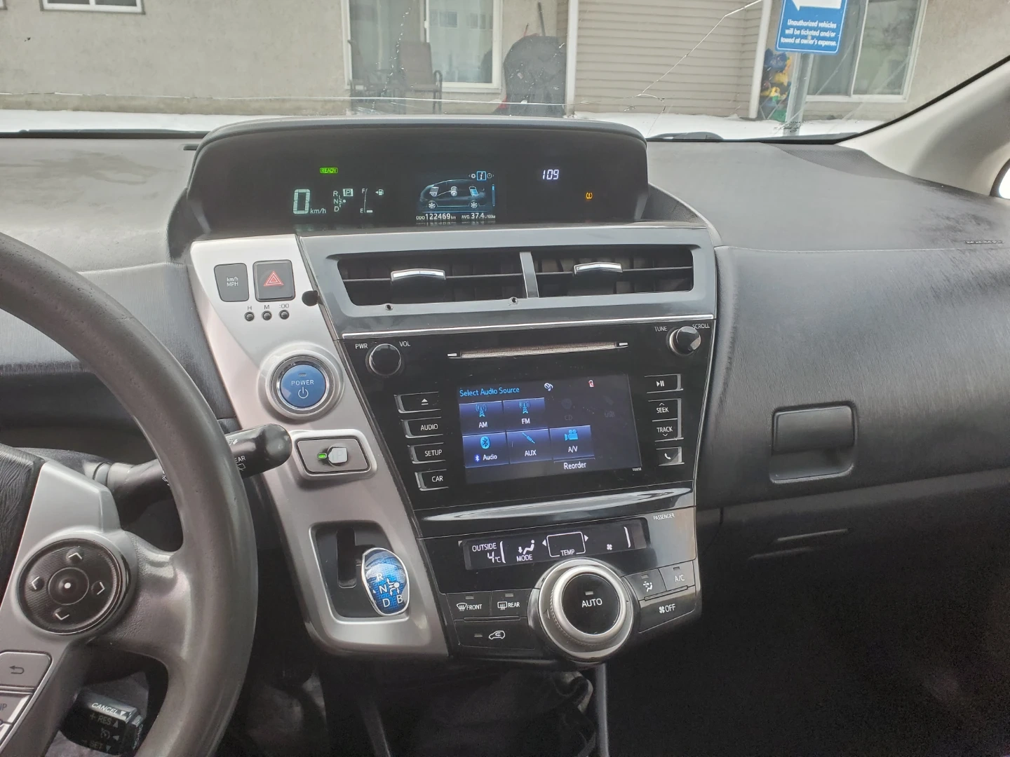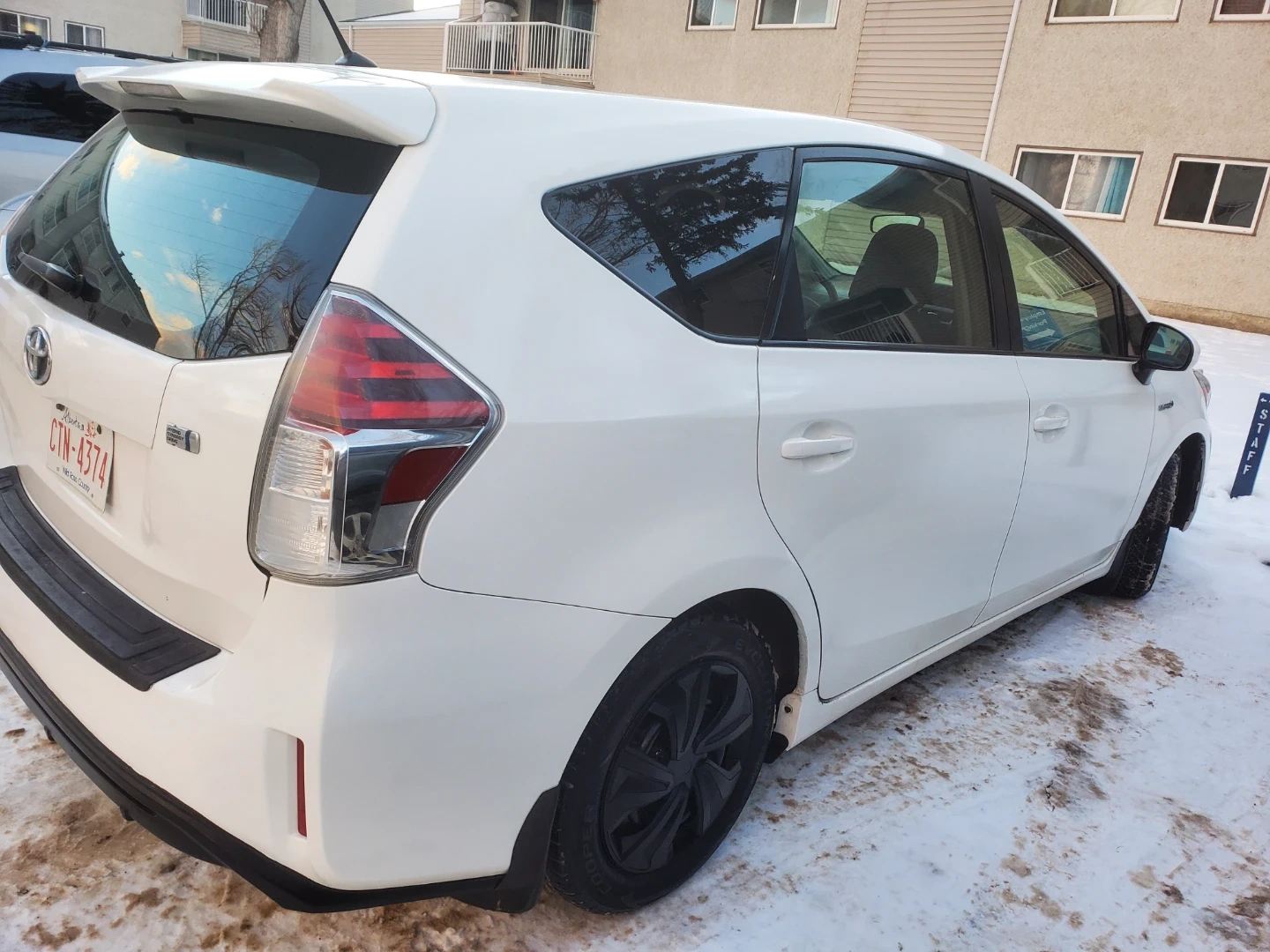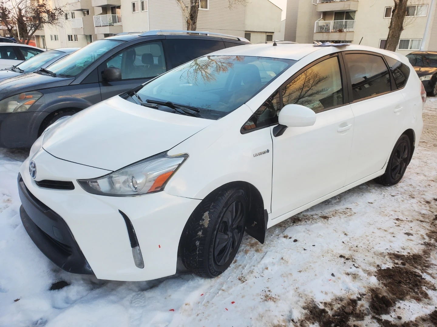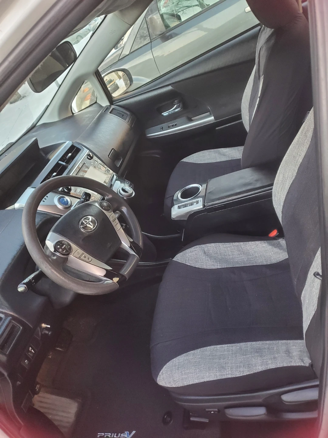 Selling a white Toyota Prius V. It appears to be in good condition. The interior features black and grey seat covers. Feel free to message me with any questions!