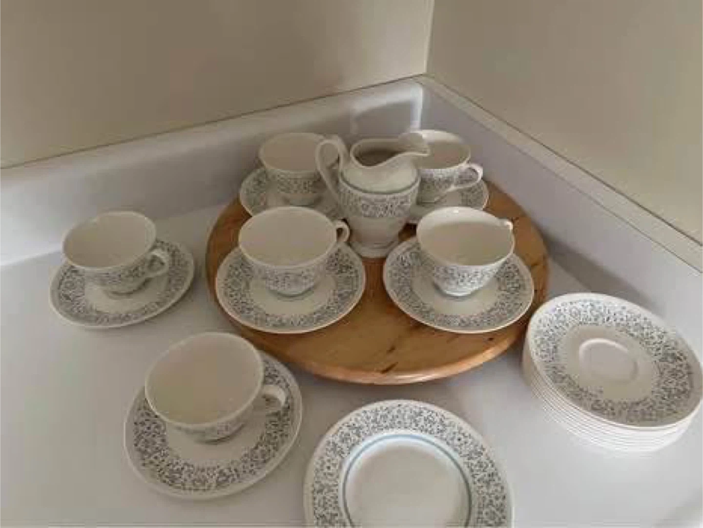 Blue Band & Flowers, Gray Leaves.Pattern: Arabesque by Royal Doulton