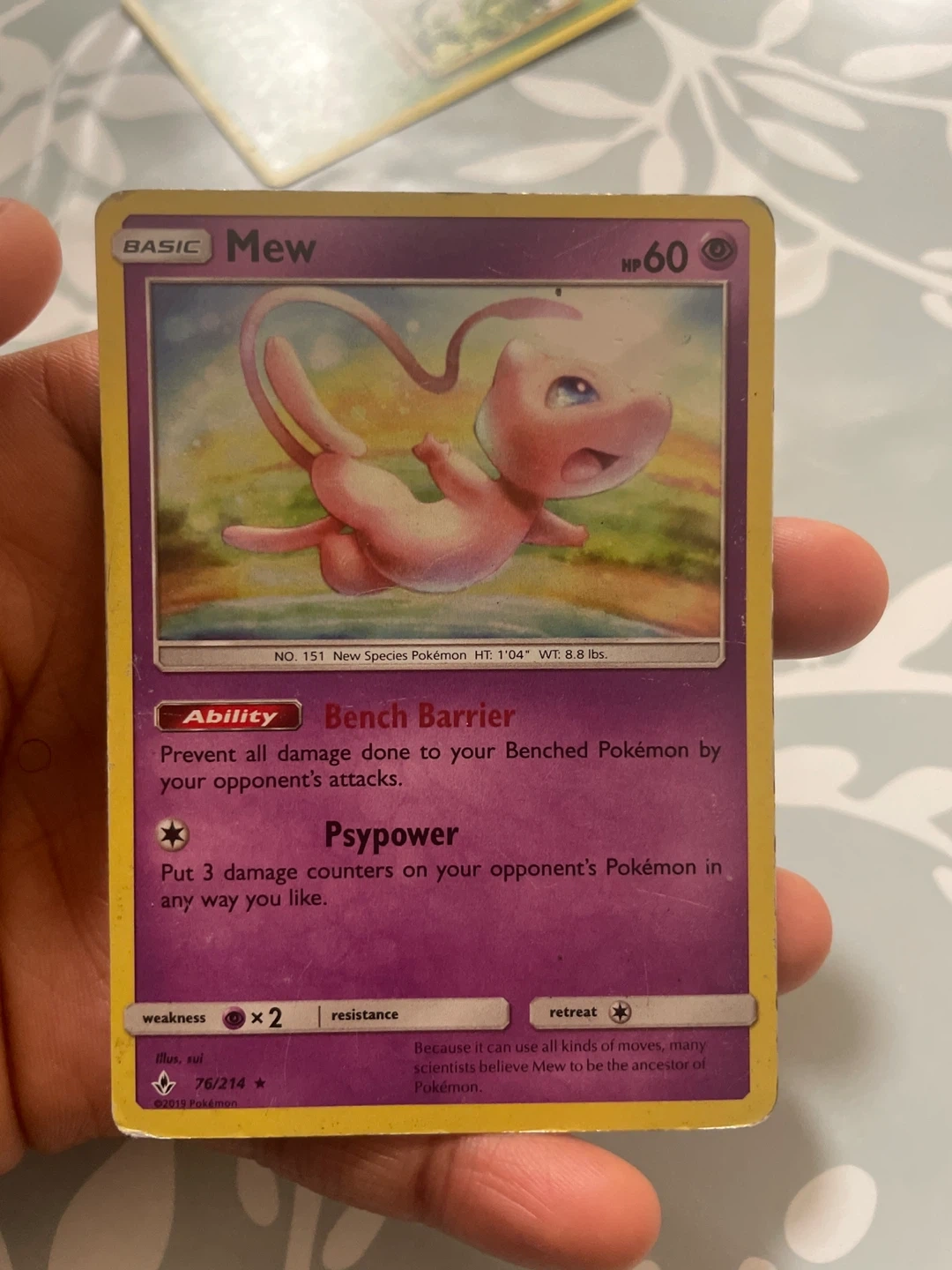 Buy & SellMew Pokemon CardMew Pokemon Card$28Selling a Mew Pokemon card. It has the ability Bench Barrier and the attack Psypower. It is card number 76/214.WHERE TO MEETWoodbine mallView MapSELLERPrincess AdomRexdale100 reviews0 chats·0 favorites·33 viewsSEND CHAT TO SELLERHi Princess Adom! I’m interested in your listing.Hi Princess Adom! I’m interested in your listing.Get the Karrot app to chatSign In to chat