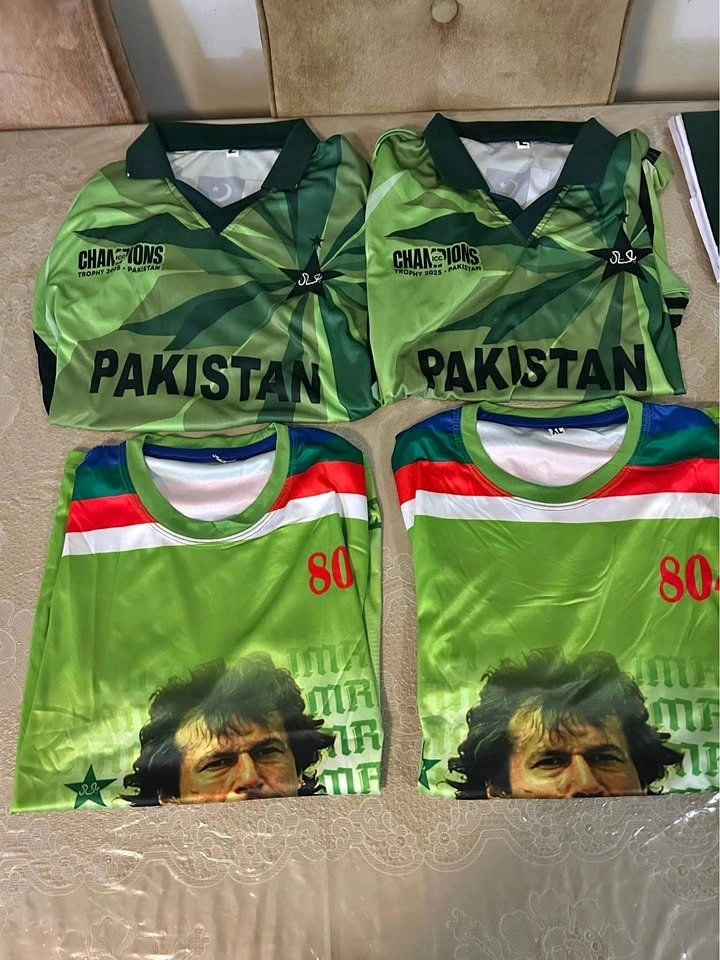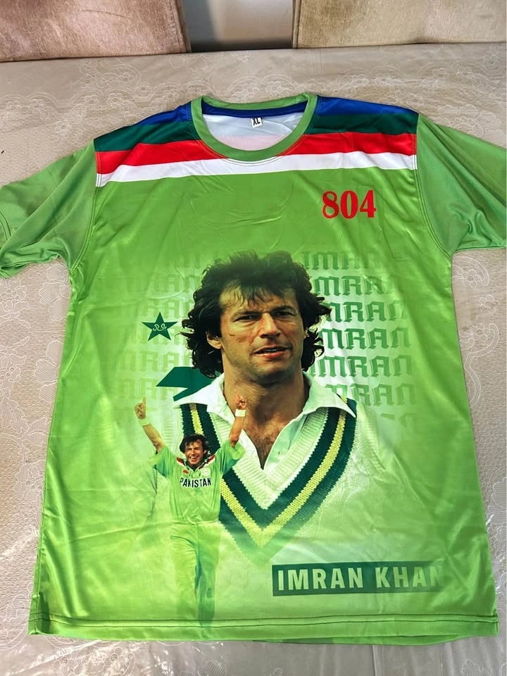 Both jerseys are unused, clean, and made with comfortable, breathable sports fabric. The Imran Khan jersey features high-quality front and back graphics, perfect for fans and collectors. The Champions Trophy jersey has the official-style green design with βPAKISTANβ across the front and bold star detailing.