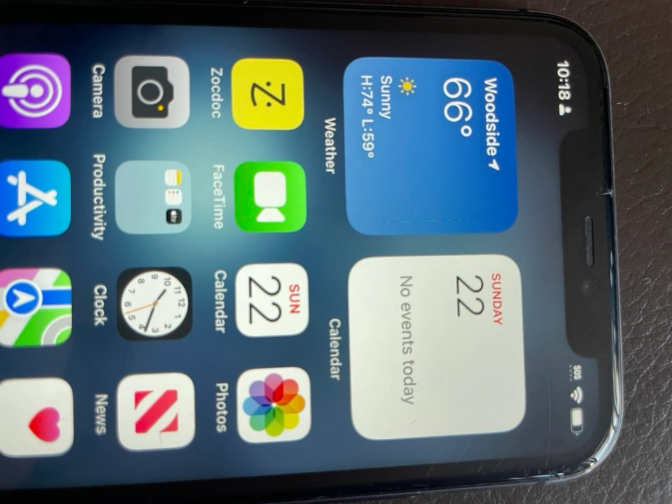 Note a hairline crack on the screen and 75% on battery. It lasts all day