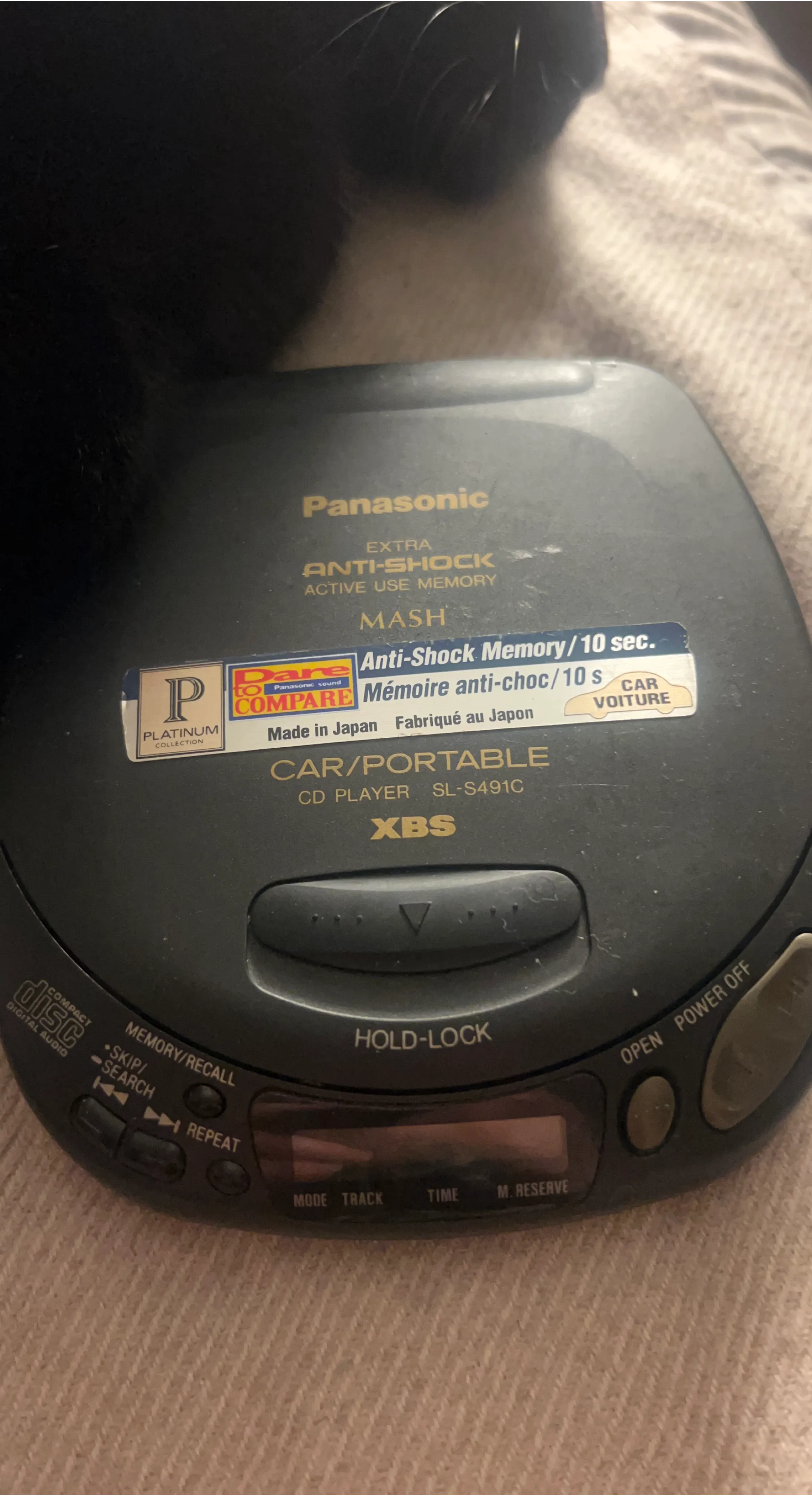 Selling a Panasonic SL-S491C car/portable CD player. It has extra anti-shock active use memory and MASH technology. Made in Japan. Features XBS sound and memory/recall function.