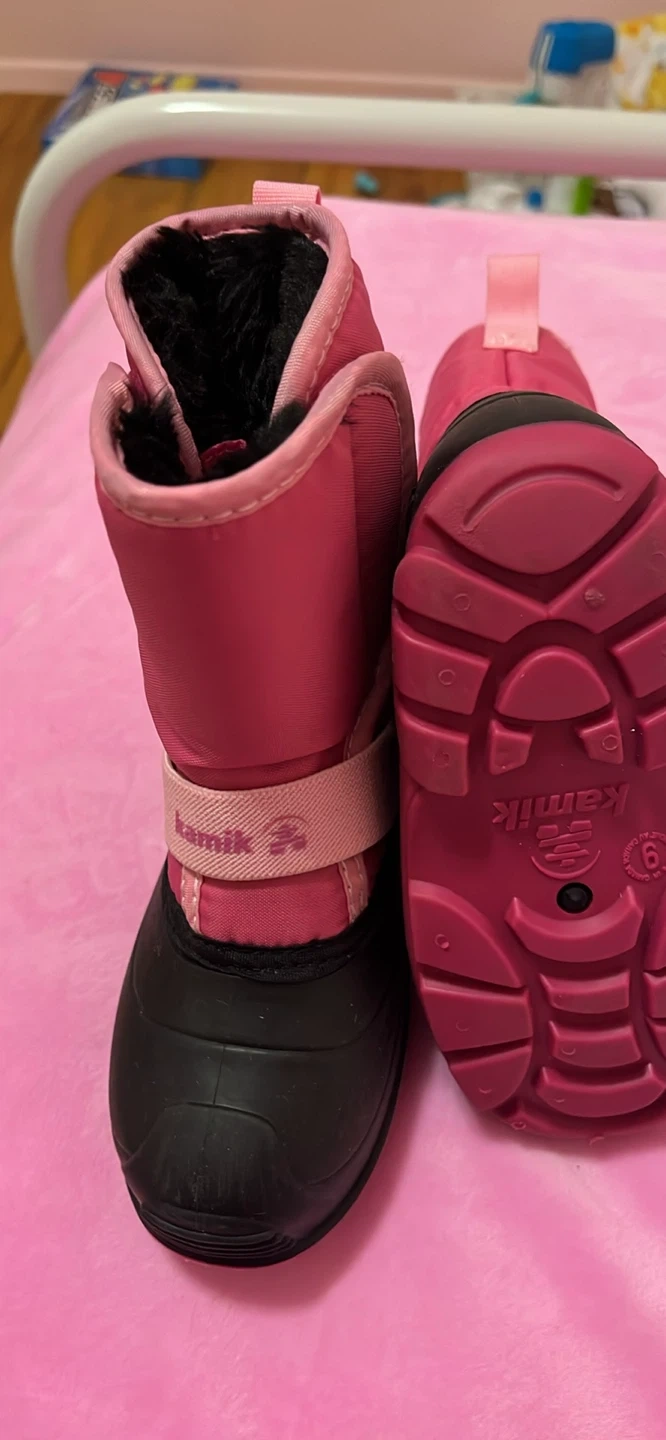 I'm selling a pair of Kamik snow boots in pink! They are toddler size 6and in great condition. These boots are perfect for keeping your little one's feet warm and dry during the winter months. They feature a durable construction and a comfortable fit. Ready for some winter fun!