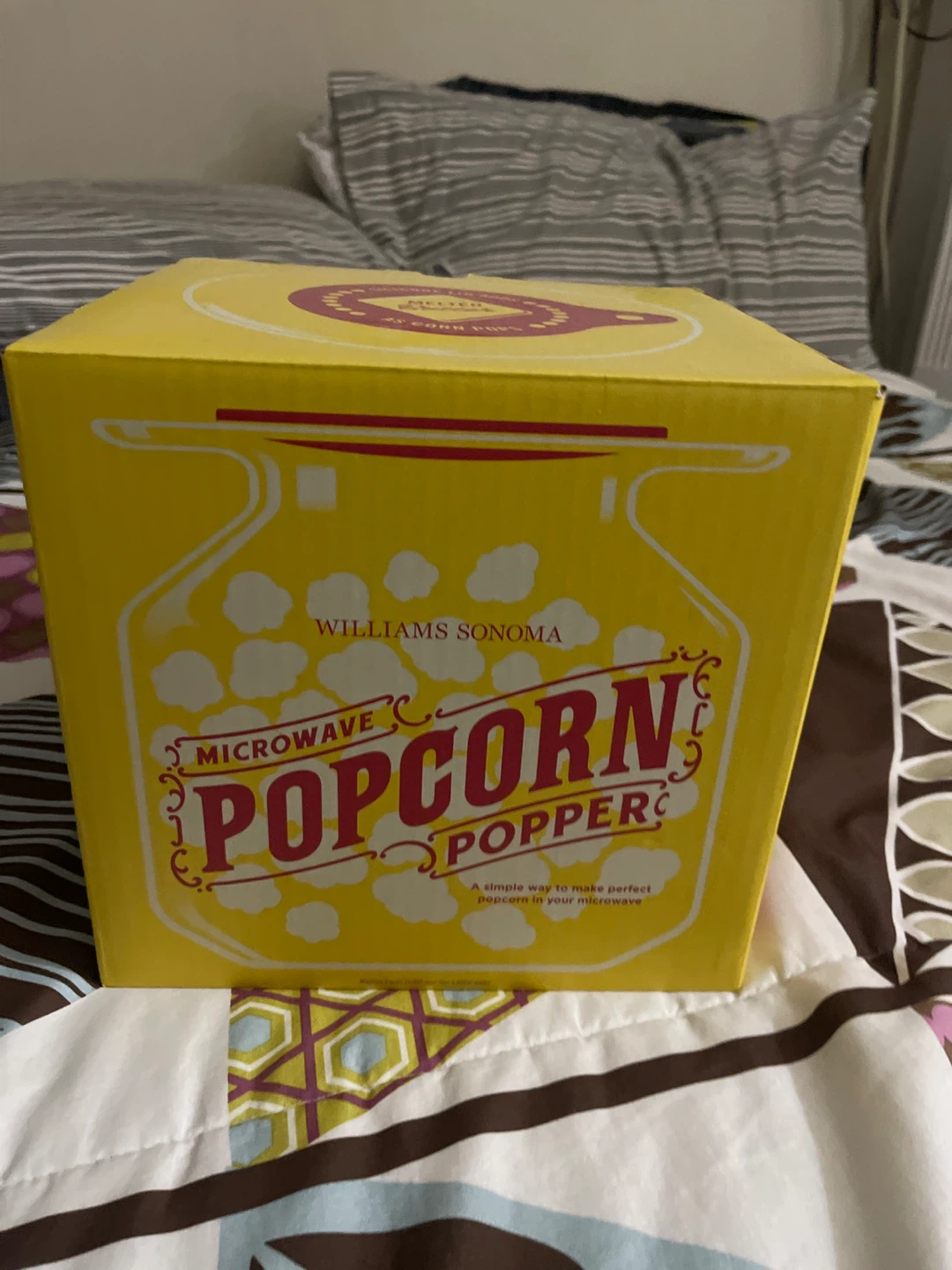 Selling a Williams Sonoma Microwave Popcorn Popper! It's still in its original packaging and makes up to 2 1/2 quarts of crisp, buttery popcorn. A simple way to make perfect popcorn in your microwave. The box is included!