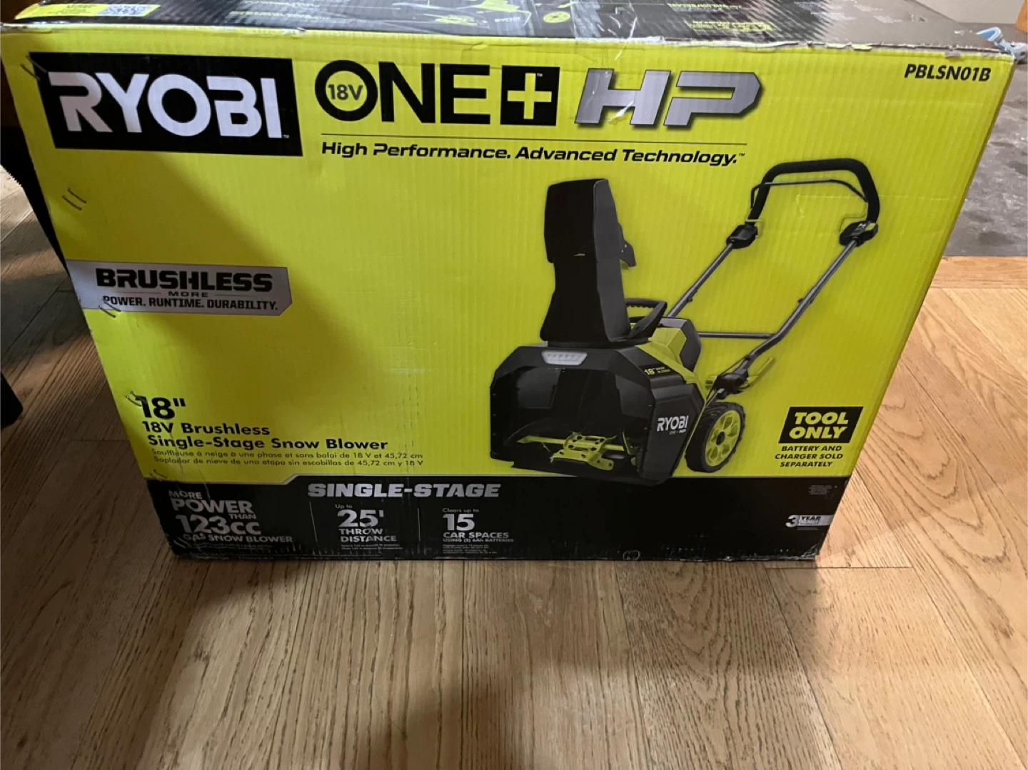 Selling a Ryobi 18V ONE+ HP Brushless Single-Stage Snow Blower. It's a tool only, so the battery and charger are sold separately.