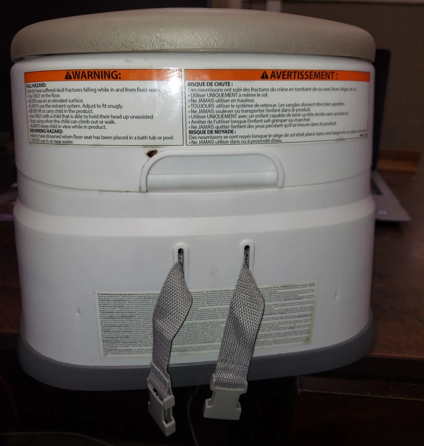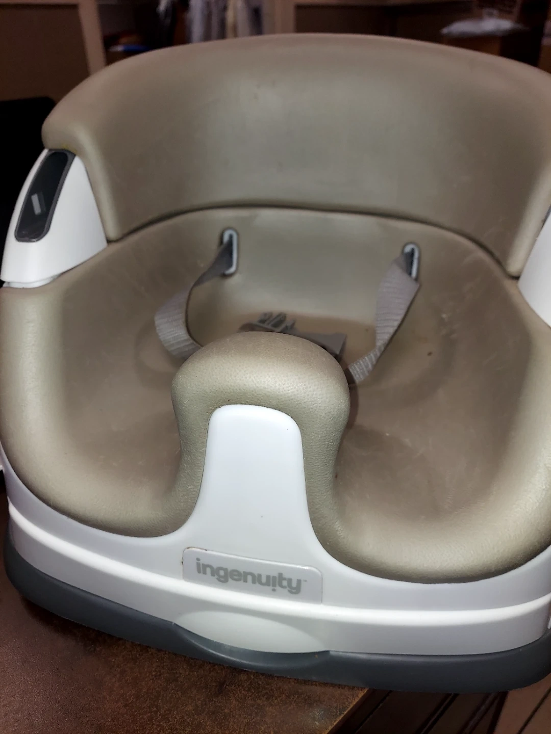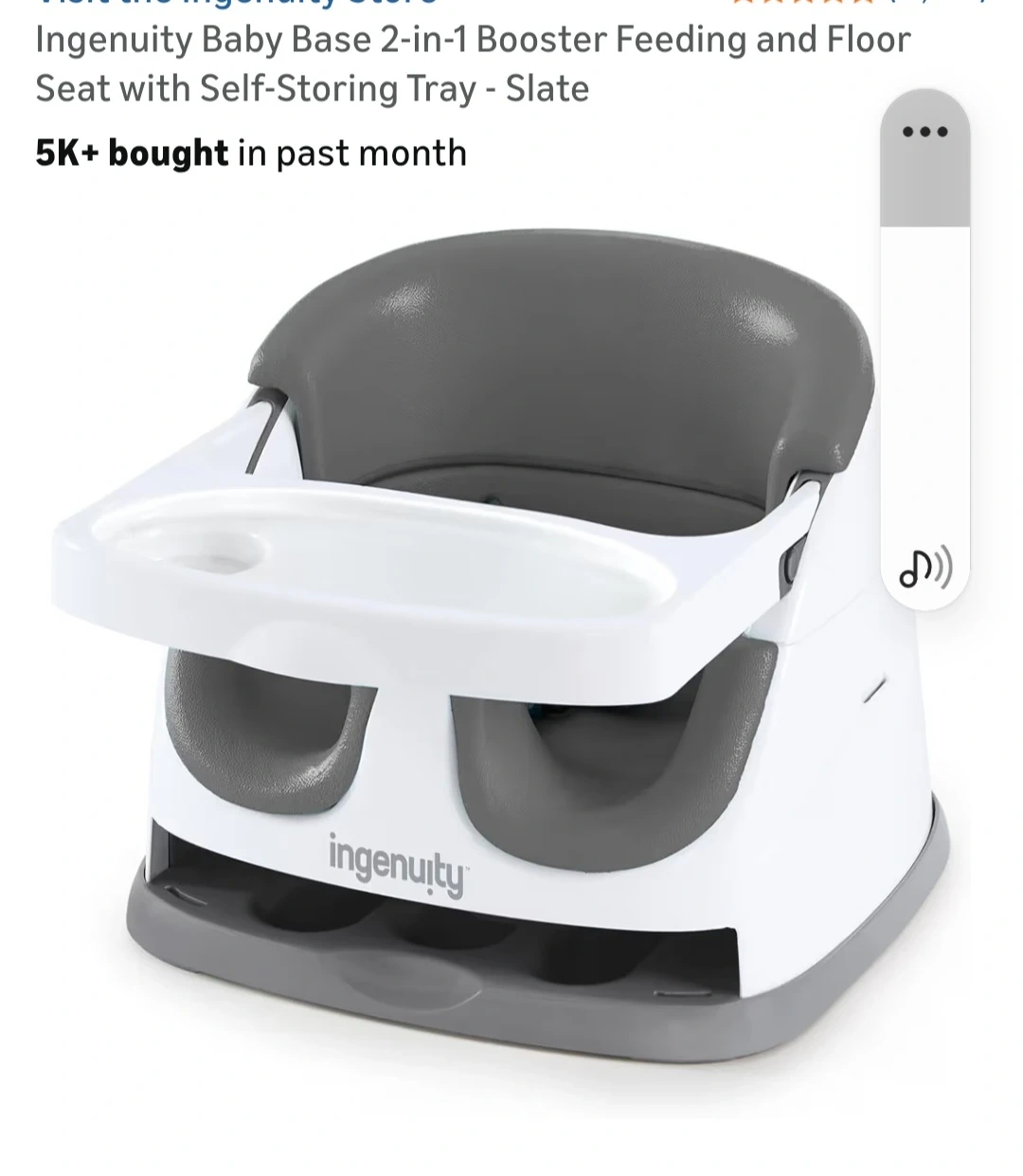 Selling an Ingenuity Baby Base 2-in-1 Booster Feeding and Floor Seat with Self-Storing Tray in Slate color. This seat is perfect for feeding time and allows your little one to sit comfortably on the floor or attached to a chair. It shows some signs of use but is still in good working condition and ready for a new family!
