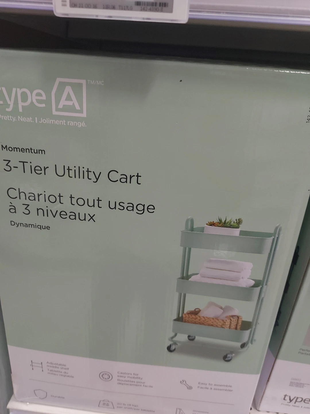 Selling a Type A 3-Tier Utility Cart in a lovely mint colour. It's perfect for adding some extra storage to any room in your home. Easy to assemble and move around thanks to its smooth-rolling casters. The box is included!
