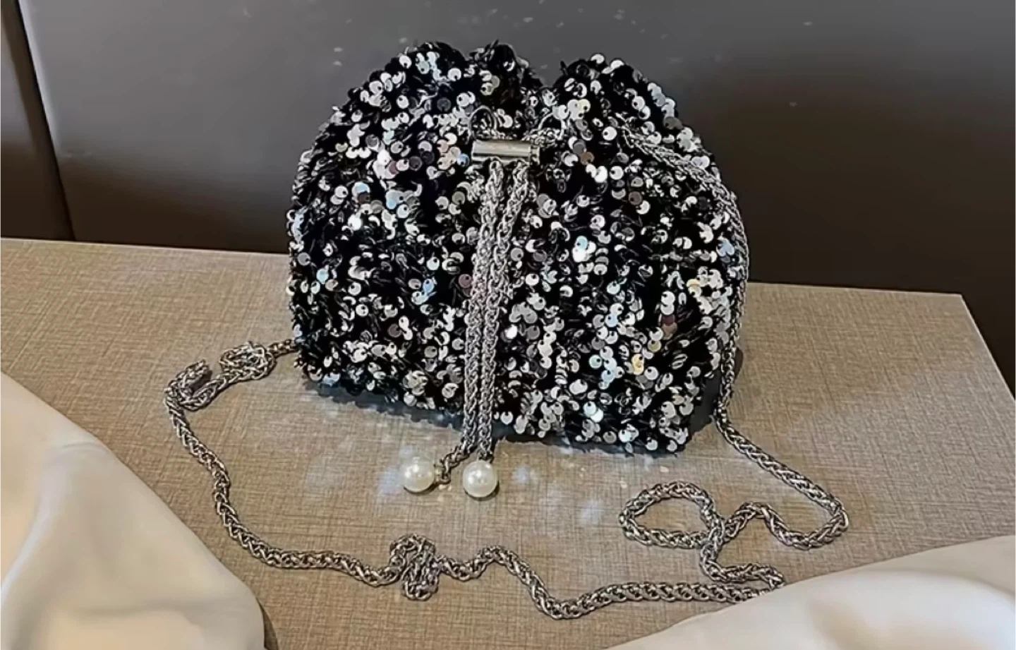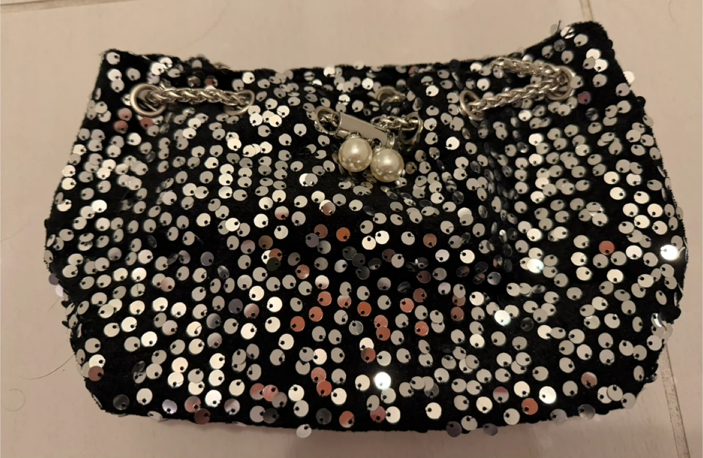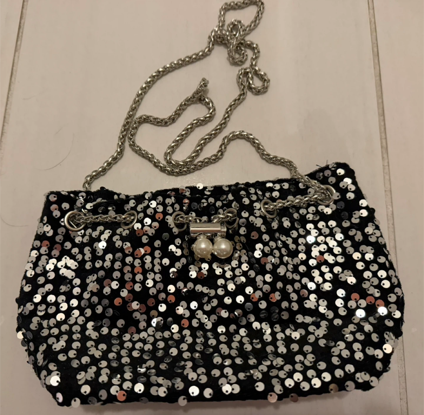 Buy & SellSequin Drawstring Bucket Bag, Black/SilverSequin Drawstring Bucket Bag, Black/Silver$15Cute sequin drawstring bucket bag with a chain strap! It's black with silver sequins, and the dimensions are approximately 16cm x 12cm x 10cmConditionNewWHERE TO MEET1250 Hornby StView MapSELLERverifiedVictoriaDowntown60475 reviews1 chats·4 favorites·80 viewsSEND CHAT TO SELLERHi Victoria! I’m interested in your listing.Hi Victoria! I’m interested in your listing.Get the Karrot app to chatSign In to chat