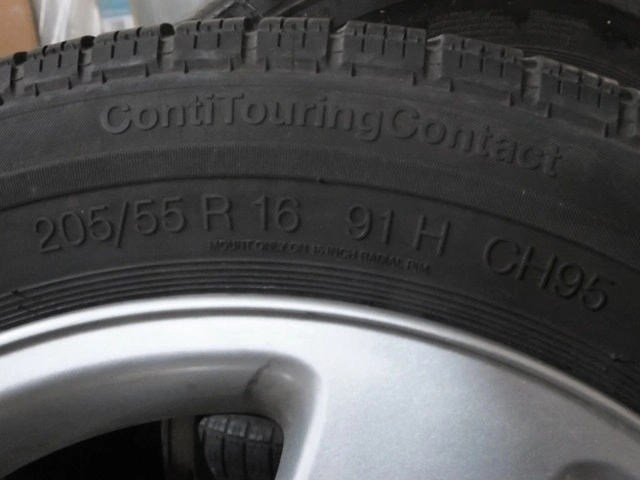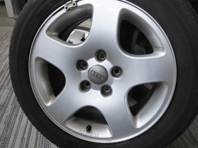 A set of 4 Audi 7JX16H2ET45 aluminum rims and Continental Conti Touring Contact 91H CH95 205/55R16 tires. Will fit older Audi A4 or A6 model.