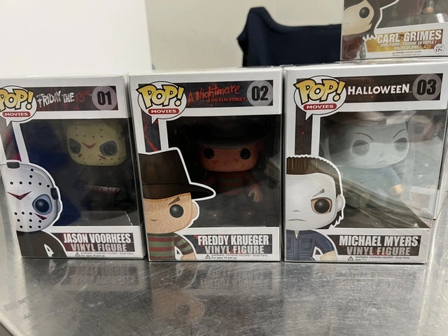 Pop! Horror Figures lists (3) Halloween - Michael Myers #03 ($25) A Nightmare On Elm Street - Freddy Krueger #02 ($30) Friday The 13th - Jason Voorhees #01 ($40) All protection Plastic Box and Brand New! Thank you