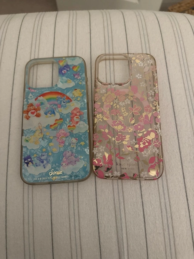 Add some flair to your iPhone 15 Pro Max with these stylish cases! This bundle includes a Sonix Care Bears case and a Kate Spade floral case. Both are in used condition, showing some signs of wear, but still offer great protection and a fun look. * Designed for iPhone 15 Pro Max * Sonix Care Bears design * Kate Spade floral design Looking to give these cases a new home. If the ad is up, they're available and ready to protect your phone!