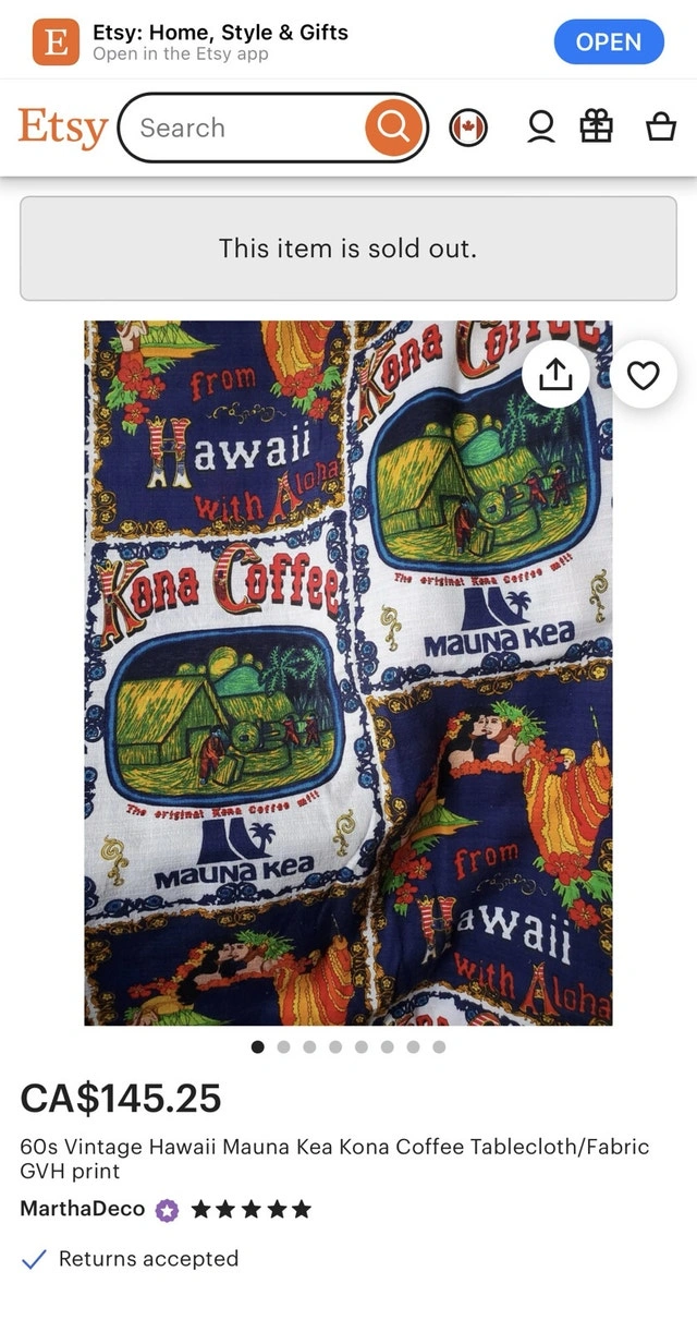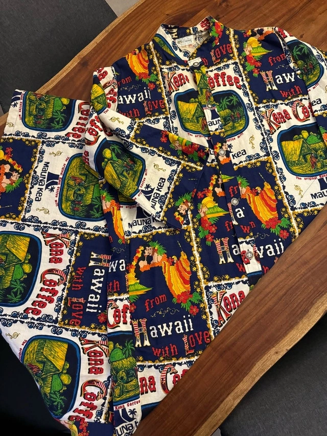 Vintage Kona Coffee Hawaiian robe / fabric