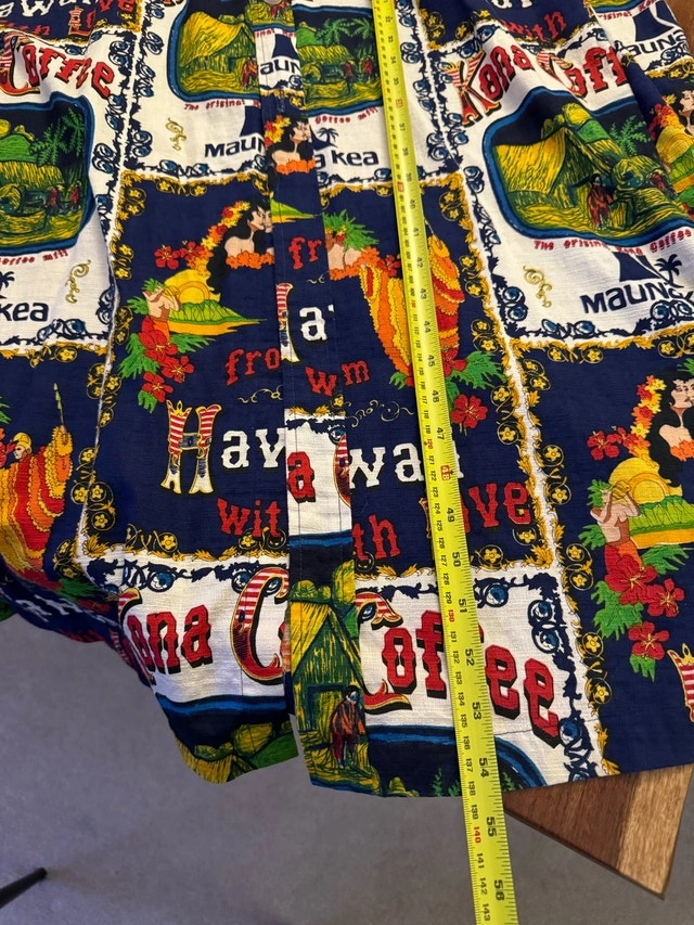Vintage (1950’s/1960’s) Kona coffee robe from Hawaii. Buttons down front, long robe. Barkcloth. Tons of fabric if you wanted to make something different with the fabric! One size fits all (but is quite large, I would say it would be an XL/XXL if assigning a size) 54” long, 37” wide. Pick up in St vital near Avalon and River.