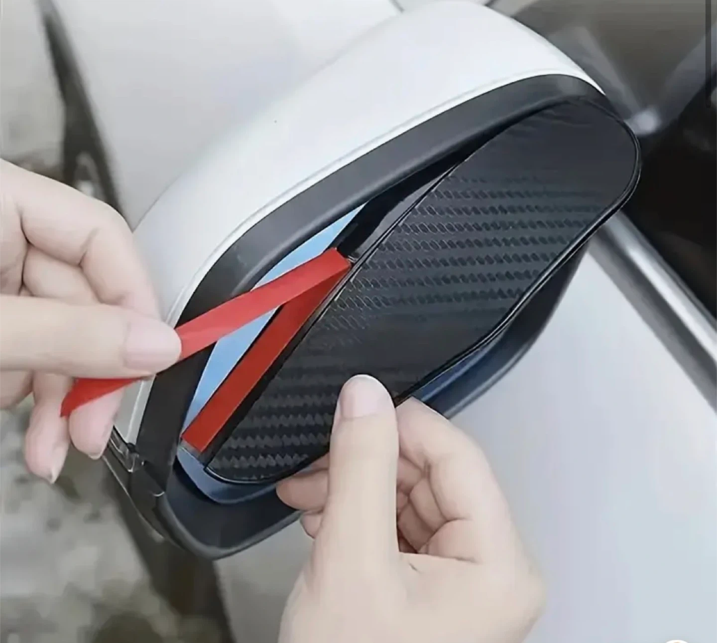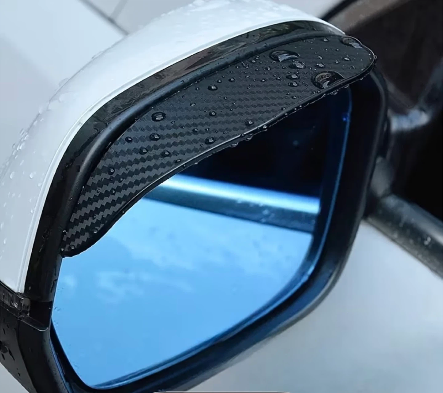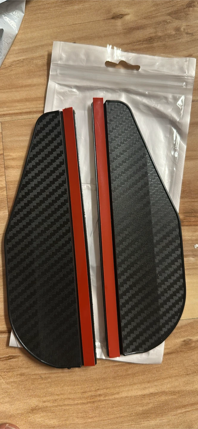 These rearview mirror visors are designed to help keep your mirrors clear in the rain and reduce glare from the sun. They're easy to install and have a sleek, carbon fibre look. Each visor is about 2.3 inches tall and 7.3 inches long.