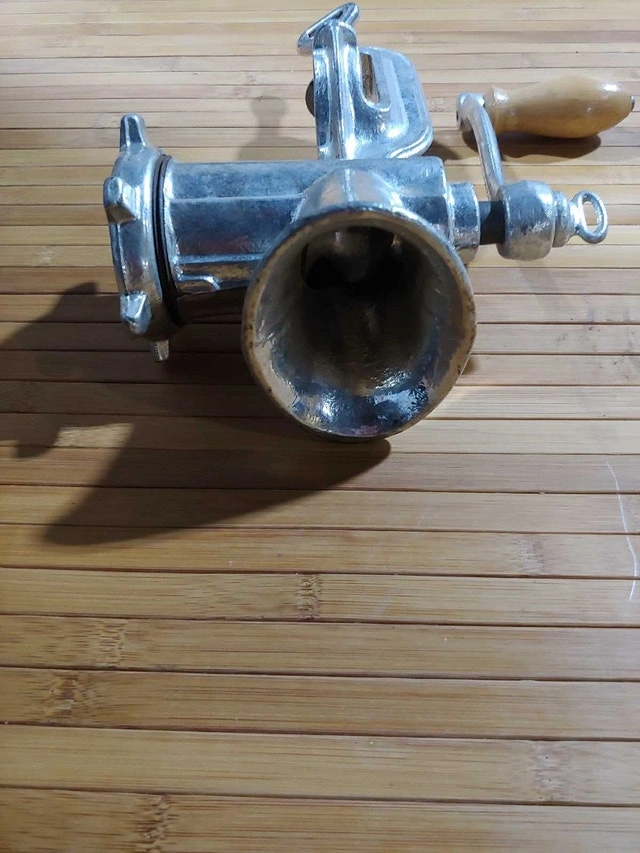 I'm offering a never used, old school meat grinder with a sturdy, clamp-on design. Perfect for the home chef or vintage kitchen collector, this grinder is in excellent condition and ready to use. Its classic design adds a touch of nostalgia to any kitchen. It is a charming piece to add to your cooking collections! Just a friendly heads-up: If you're seeing this ad, the meat grinder is still up for grabs!
