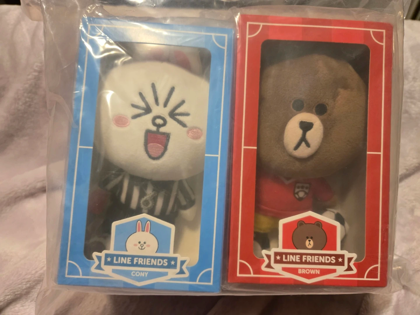 Selling a set of new LINE FRIENDS plush toys from McDonald's 2018 soccer league! These adorable plushies feature characters like Brown, Cony, Sally and Choco in soccer-themed outfits. They're still in their original packaging and ready to bring some fun to a new home. Perfect for collectors or as a cute gift!