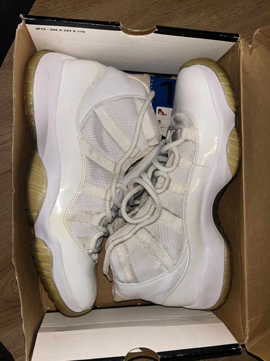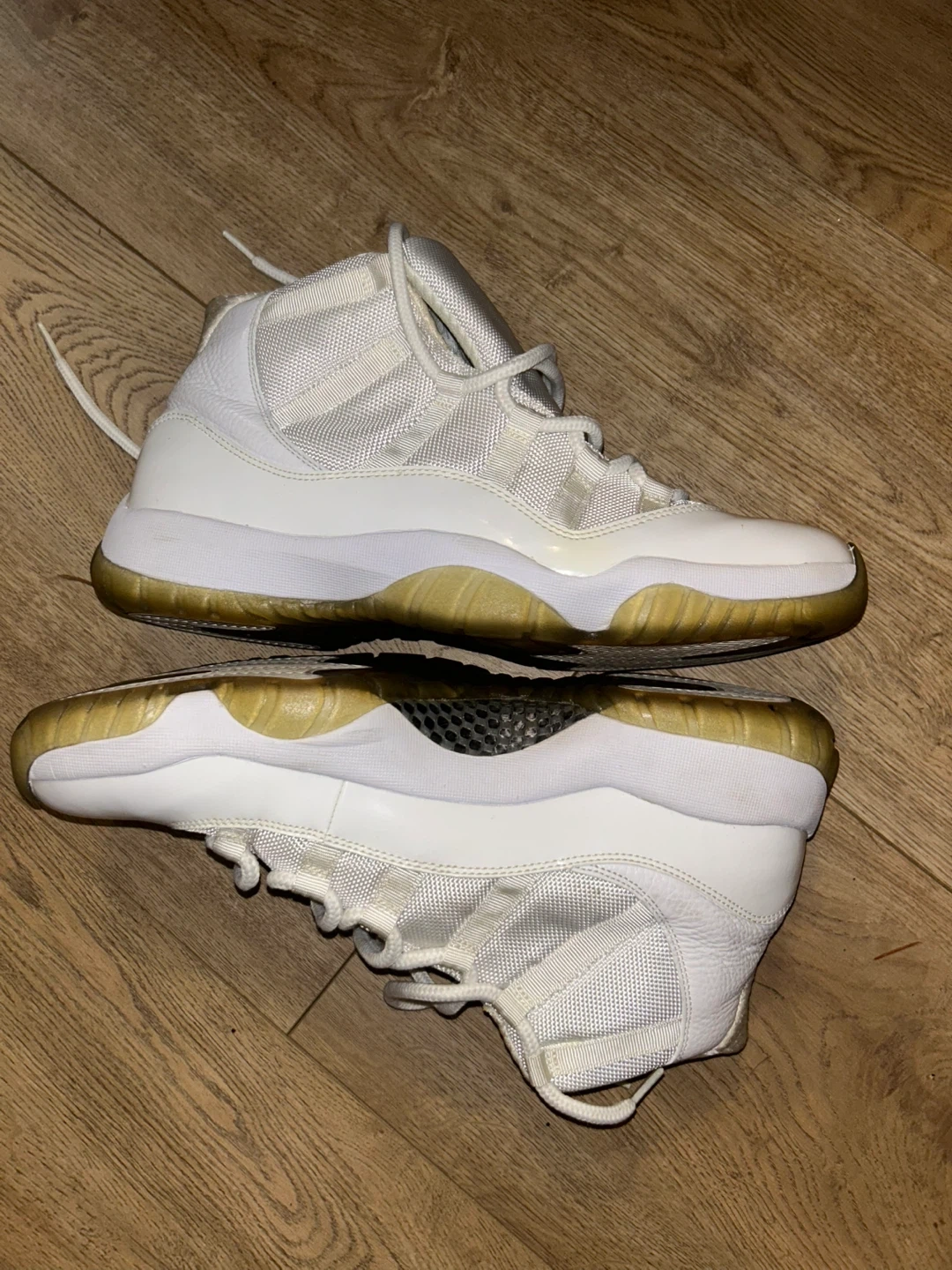 Selling a pair of Jordan 11 Retro in white, size 11. The shoes come with the original box. They are in used condition, as you can see in the photos, but still have lots of life left!