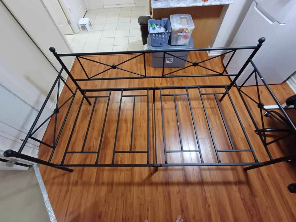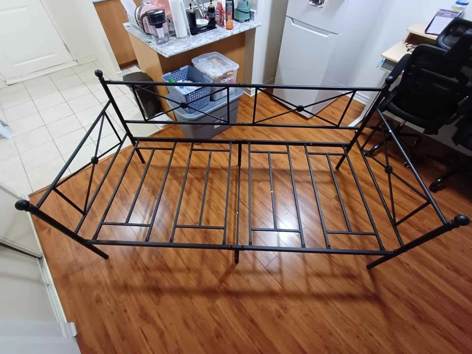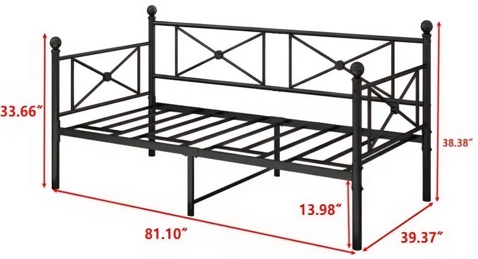 Sturdy black metal daybed/bed frame with a sleek, modern design. Can be used as a bed, sofa, or guest daybed, making it perfect for apartments, bedrooms, or living spaces.
