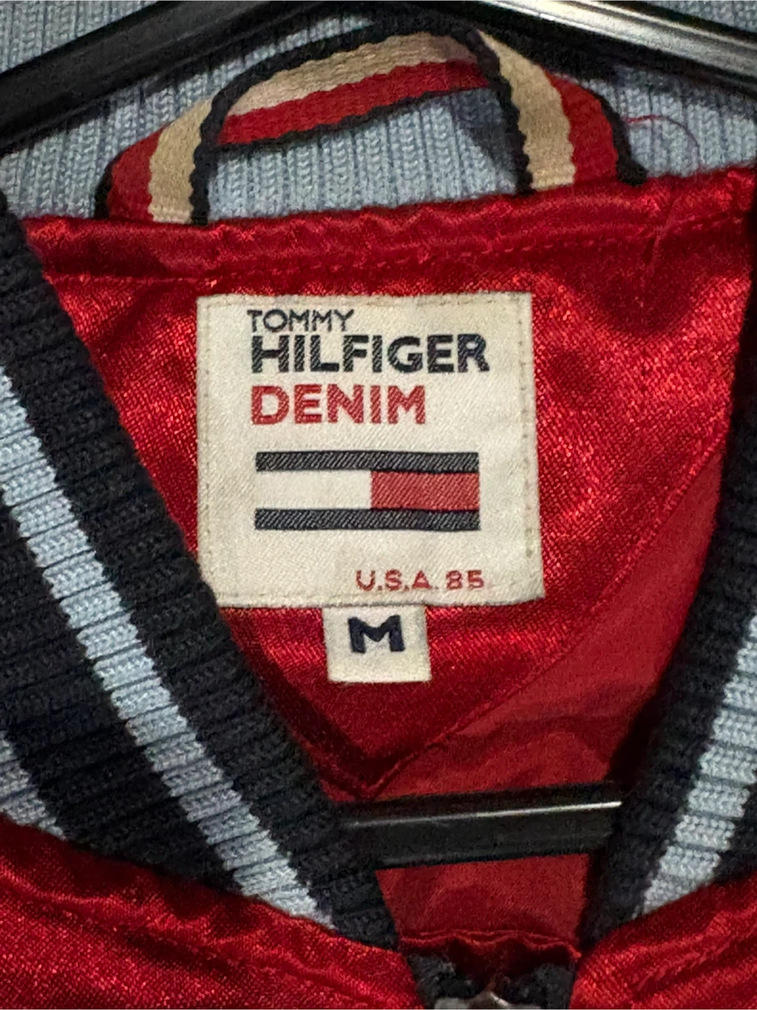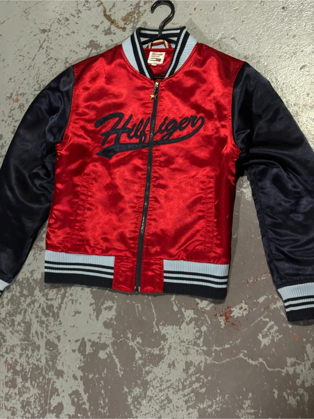Selling a Tommy Hilfiger Denim varsity jacket in size medium! It's a stylish red and navy blue colour, perfect for adding a pop of colour to your wardrobe. The jacket is in great condition and ready for a new owner!