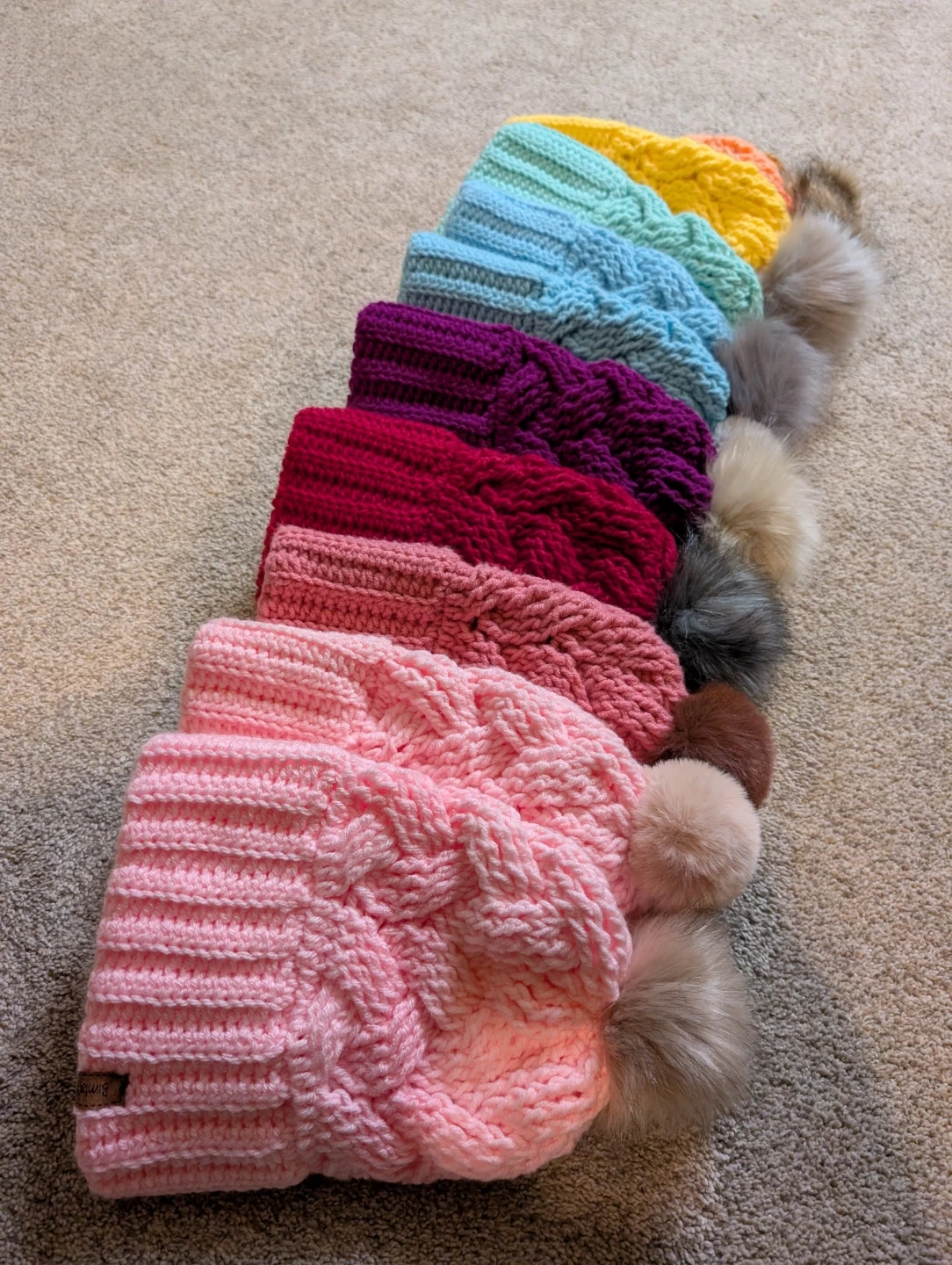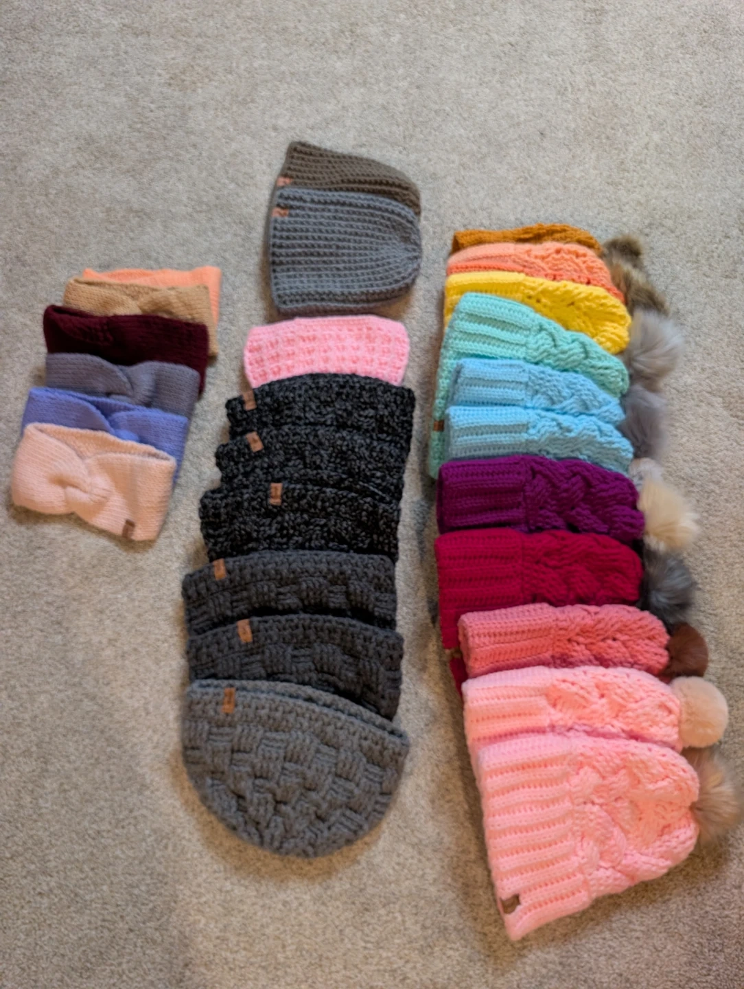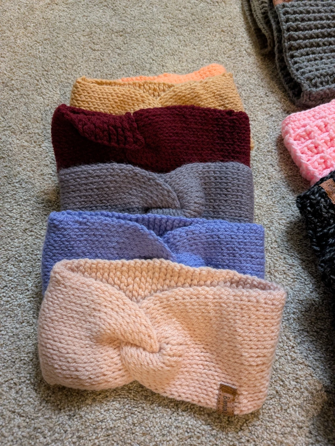 Selling a variety of handmade knitted headbands and beanies! They come in different colours and designs. Perfect for keeping warm and stylish during the colder months. Toques with pom poms -$25 , Beanies and toques $20 and headbands $10 . 😊